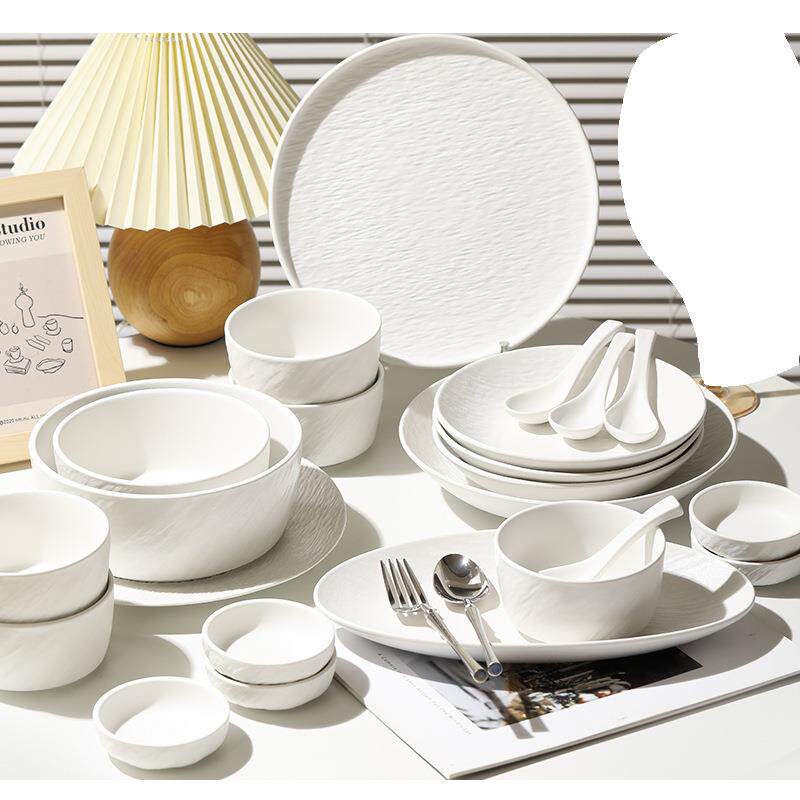 高温釉下彩纯白陶瓷餐具套装家用简约纯色碗盘碗碟组合碗具整套