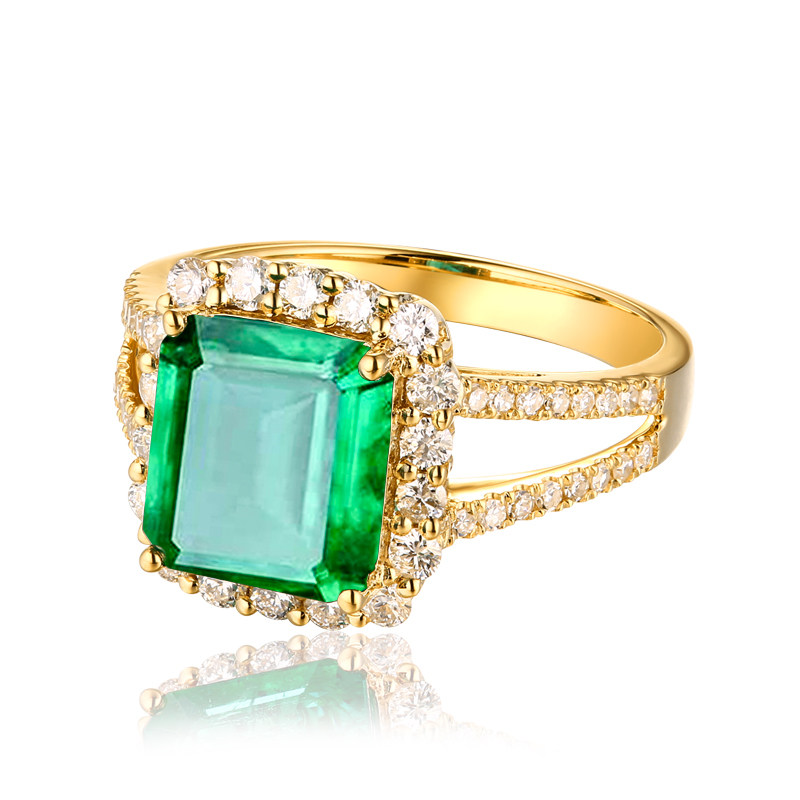 蜜安琪 2克拉天然祖母绿宝石戒指 轻奢时尚女彩宝 18K金镶钻石