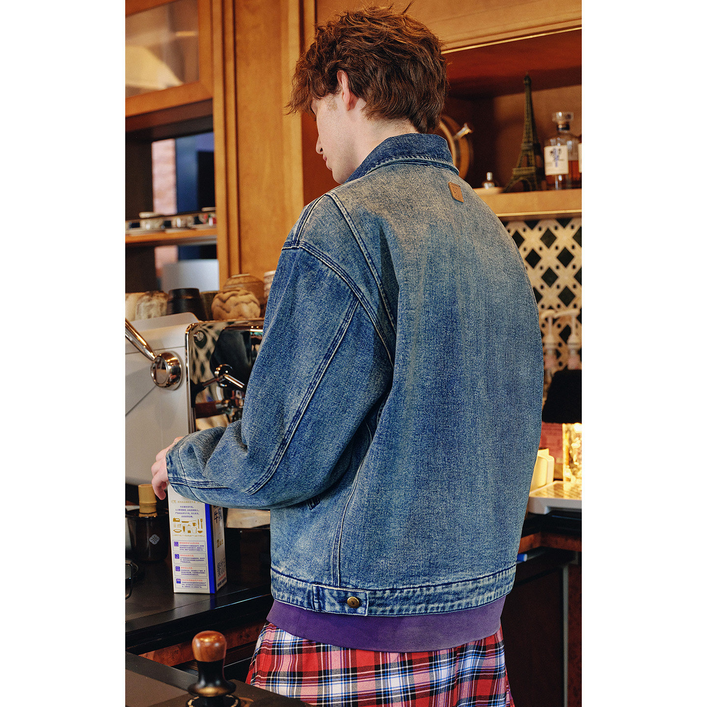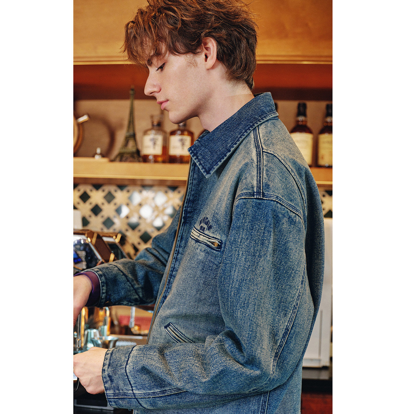 Wassup Shark美式牛仔外套男春秋季复古工装休闲夹克百搭翻领上衣