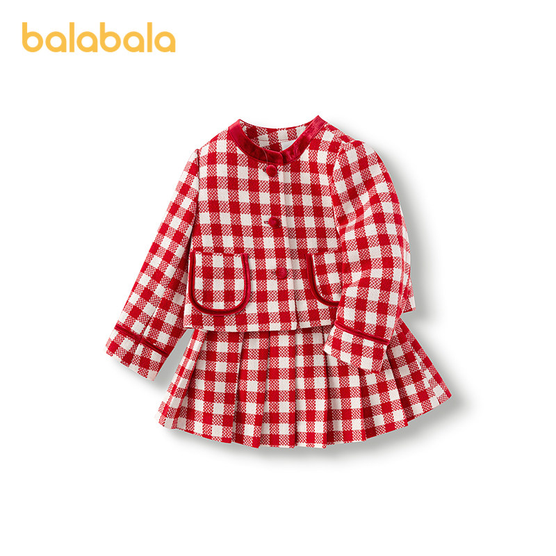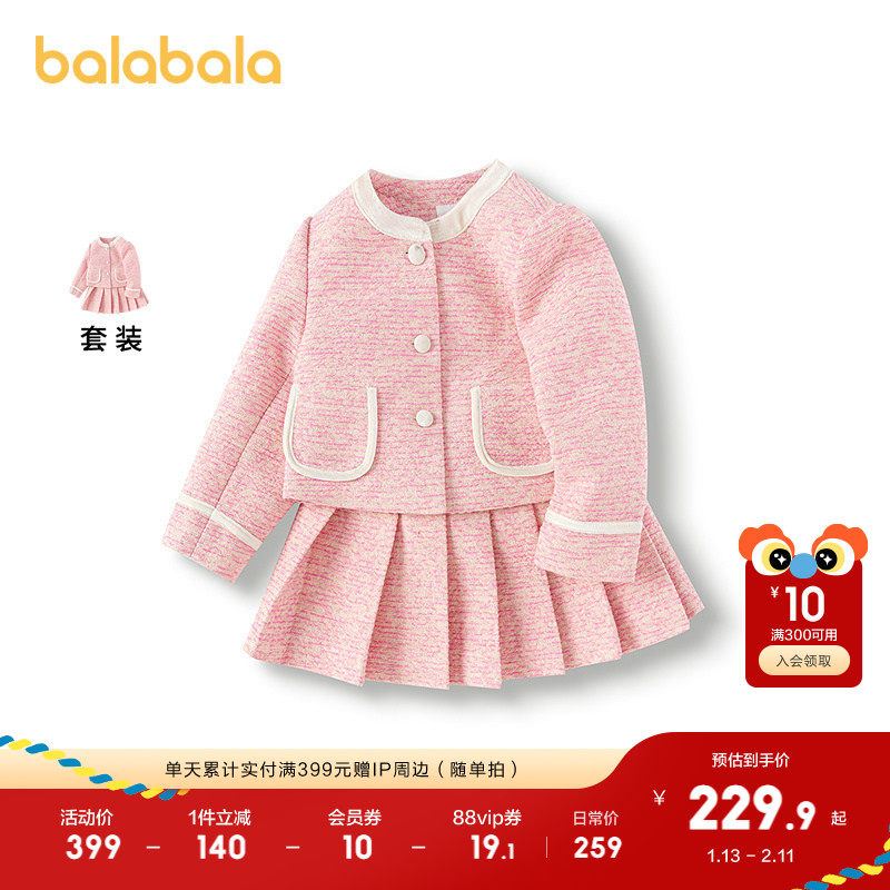 巴拉巴拉童装儿童百褶裙套装女童宝宝小香风两件套2025春秋保暖潮