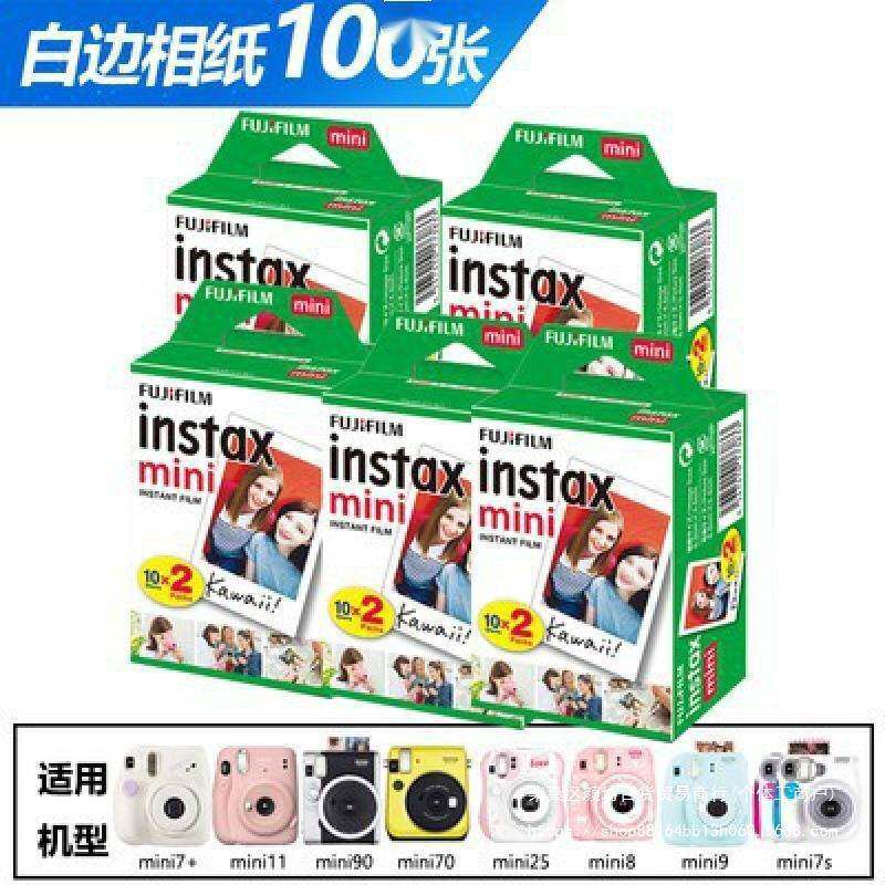 富士拍立得相相机三寸纸mini白边纸纸100张拍立得相默认琉相驳
