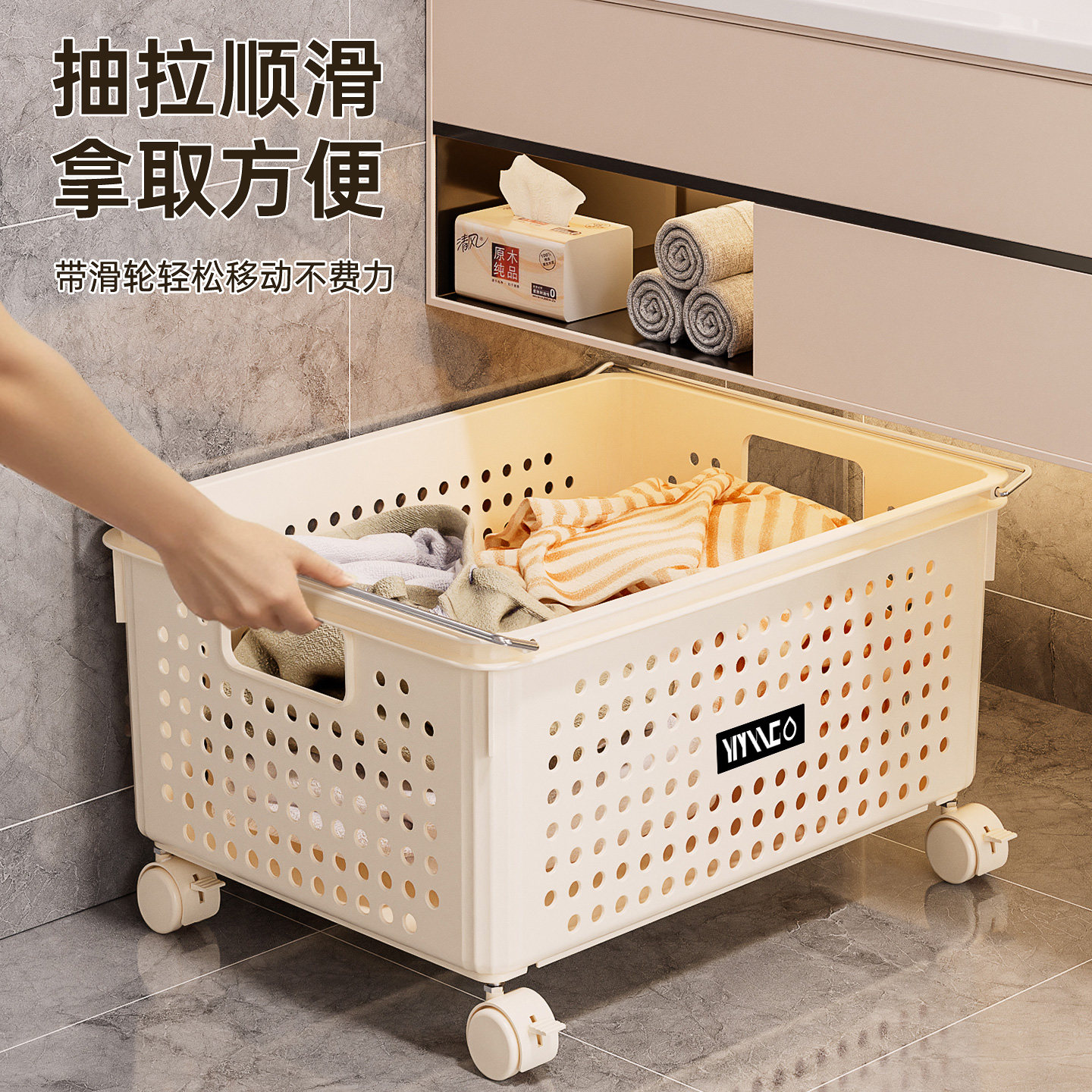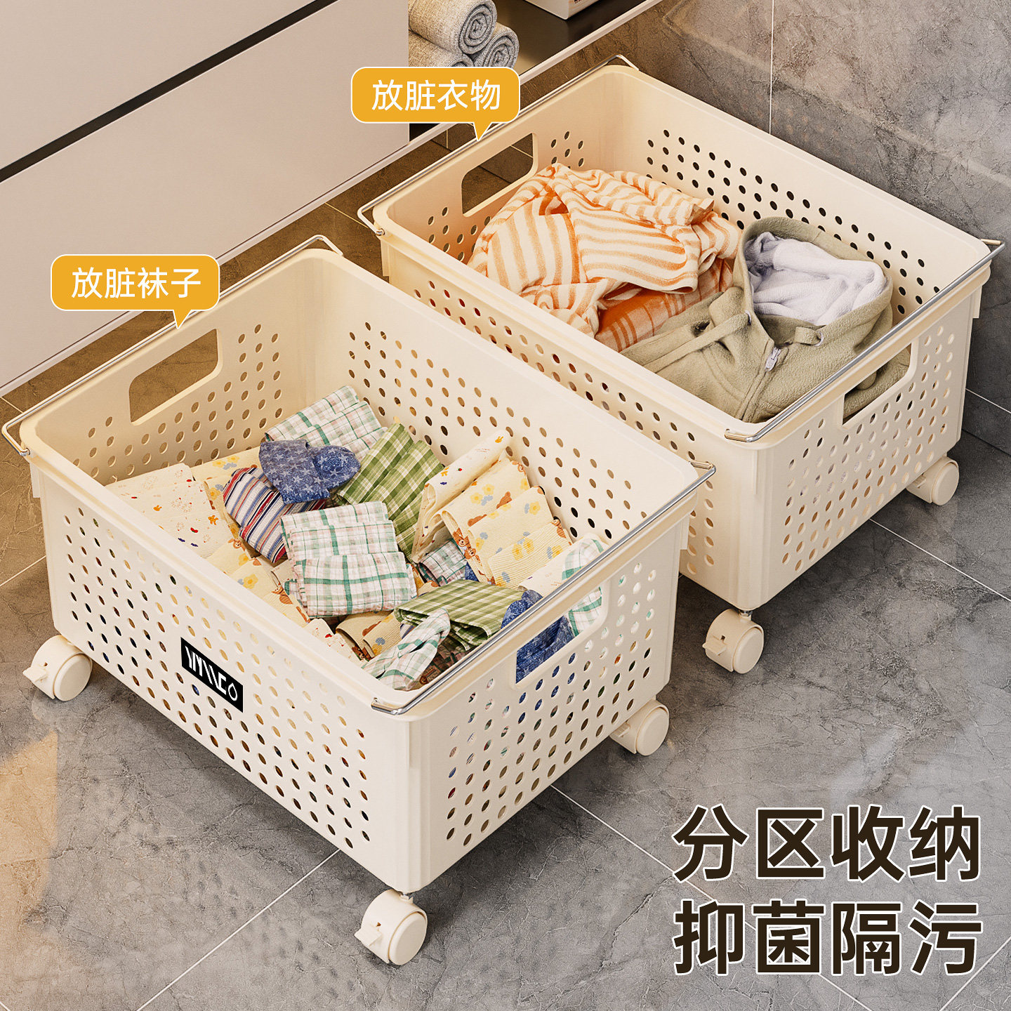 浴室柜下脏衣篓家用大容量脏衣服收纳篮带轮推车杂物洗衣储物筐子