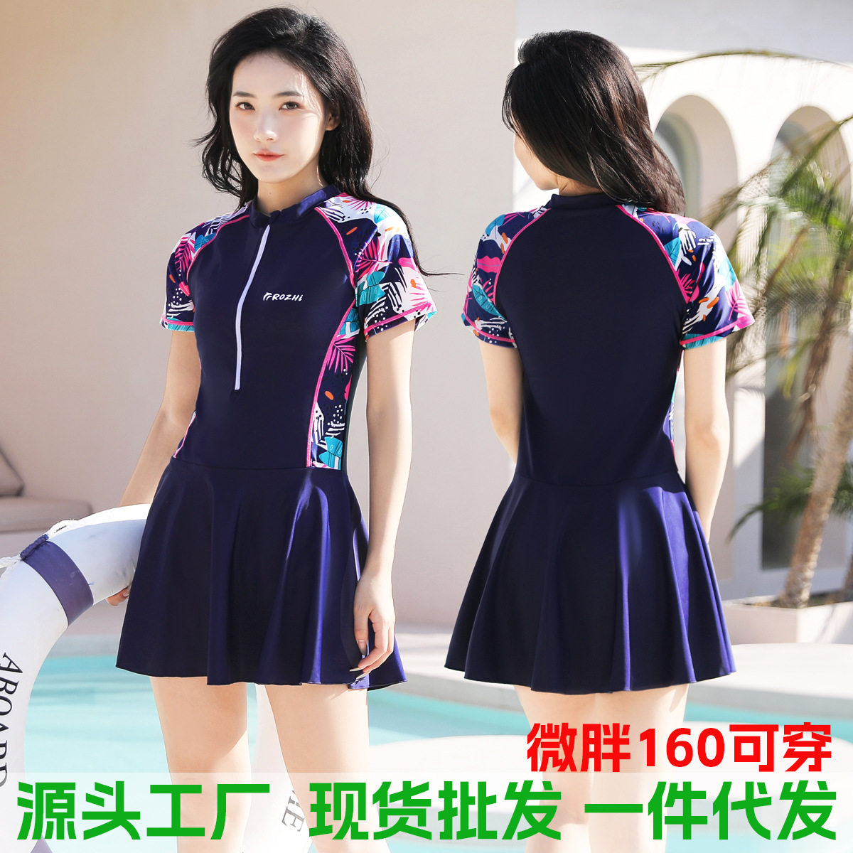 大码泳衣女2025新款连体保守遮肚显瘦裙式女士高级感温泉泳装批发