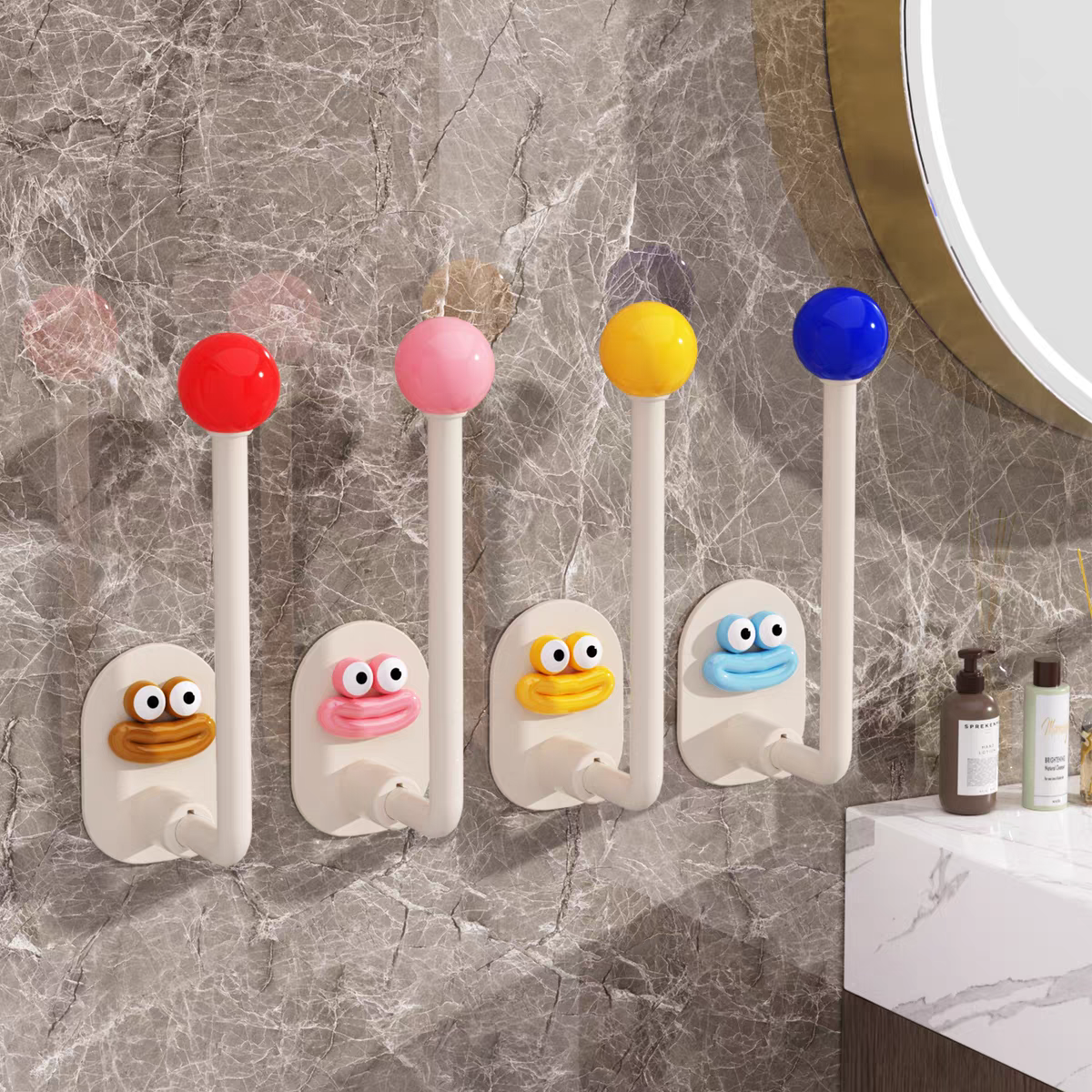 卫生间发圈收纳架壁挂橡皮筋头绳发夹沐浴球收纳杆免打孔墙上挂钩
