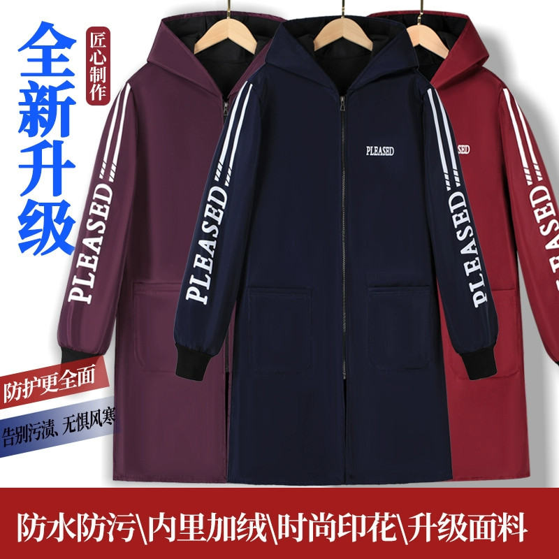 冬季加绒罩衣大人加厚长袖围裙防水韩版女时尚外套家用工作服定制