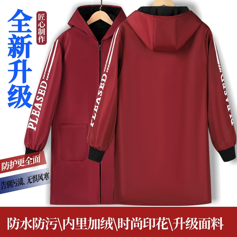 保暖加绒罩衣工作服御寒加厚厨房冬季长袖围裙防水防油污成人舒适
