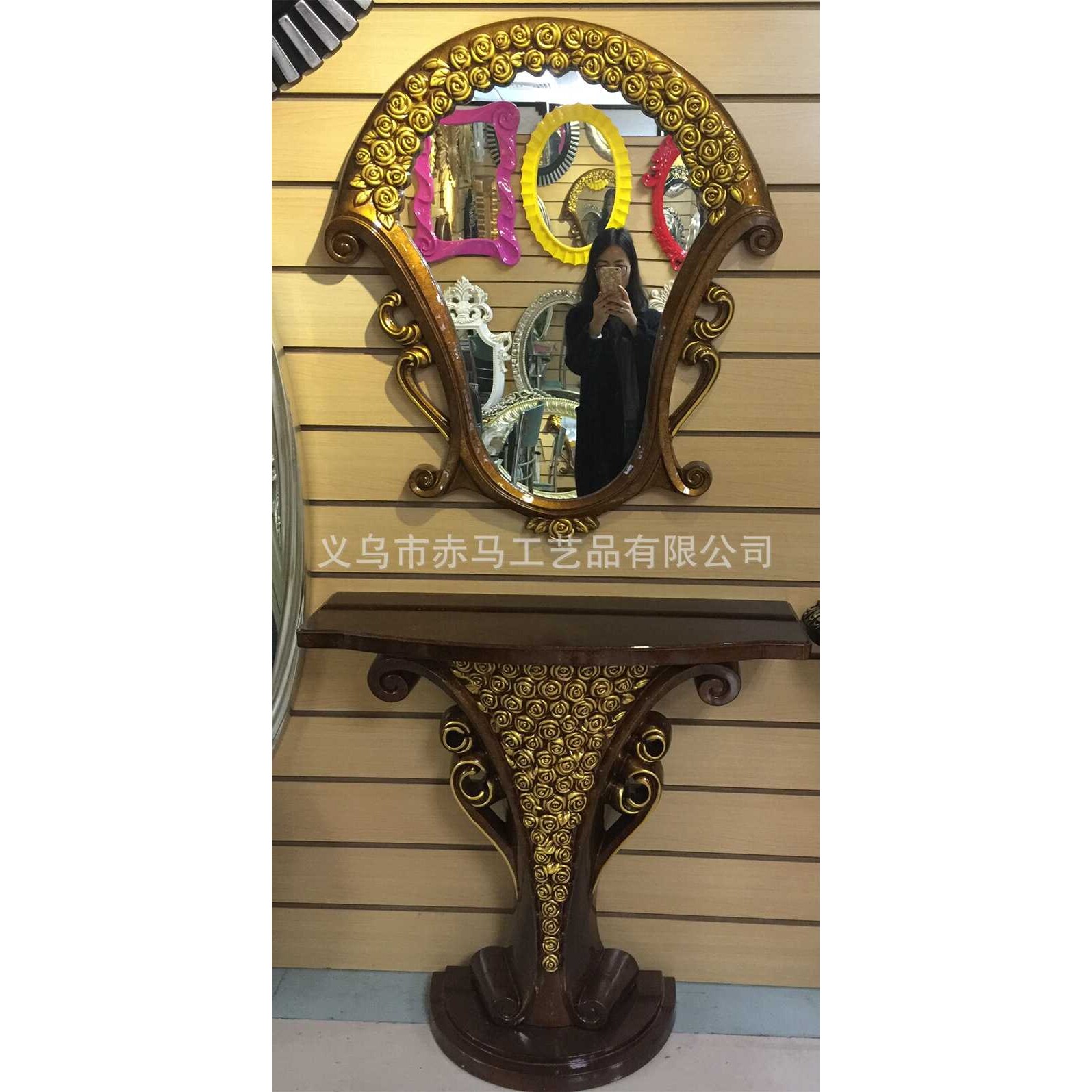法式复古玄关桌入户装饰案台隔断柜梳妆台金银箔家具欧式仿古桌