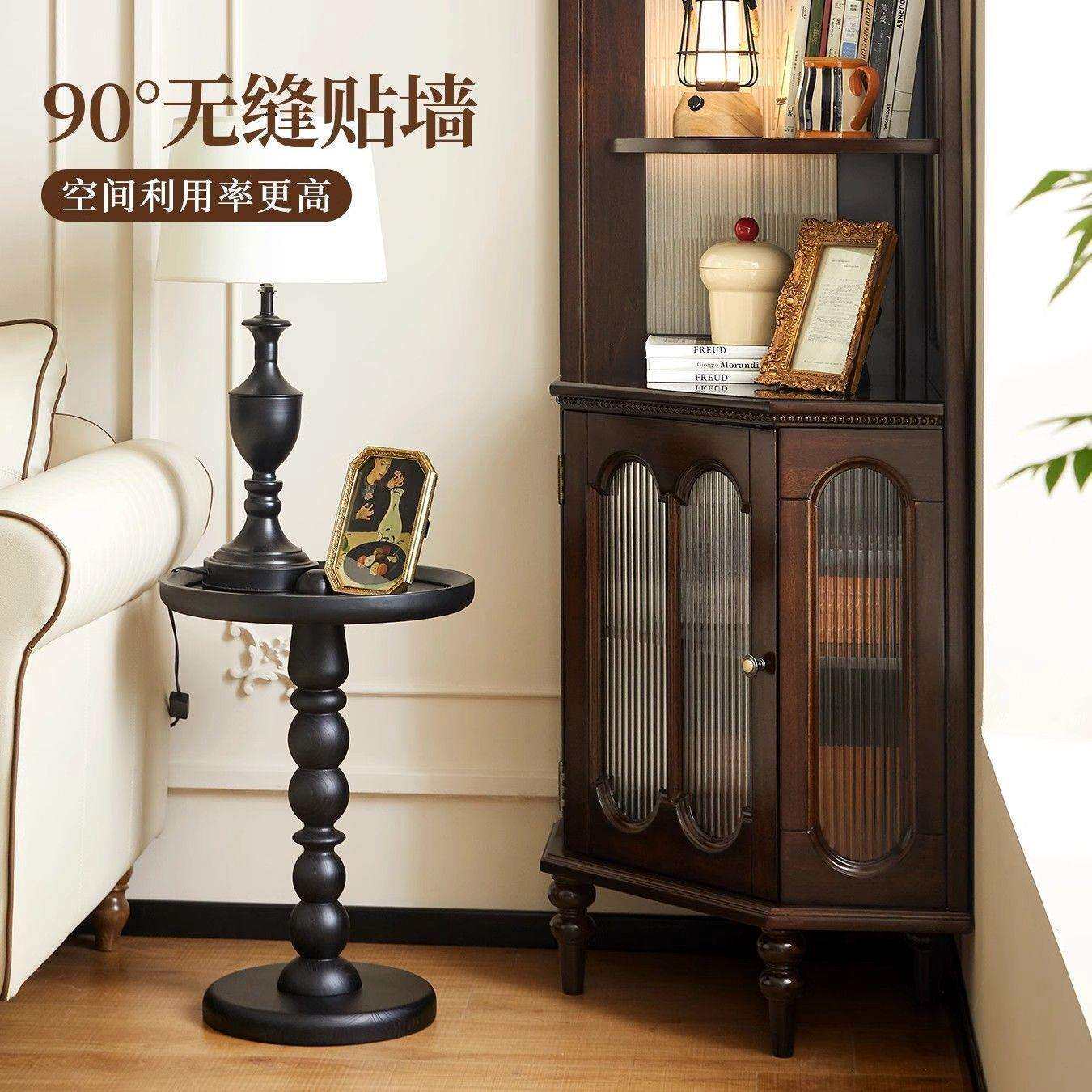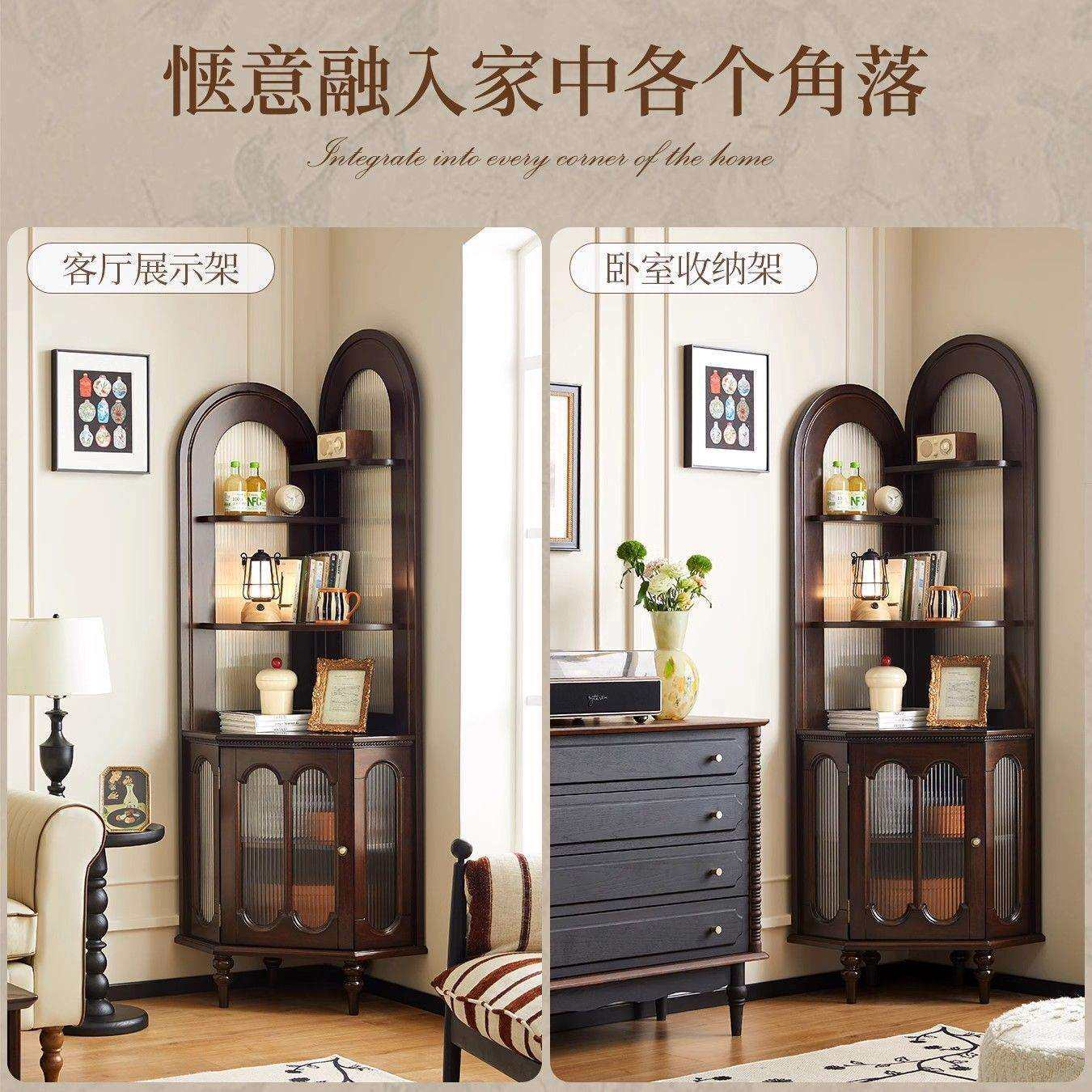 美式复古实木客厅转角柜三角柜法式墙角柜置物架靠墙一体