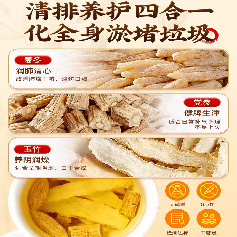 麦冬玉竹党参组合茶泡水喝生津水的功效与作用药旗舰正品润燥津液