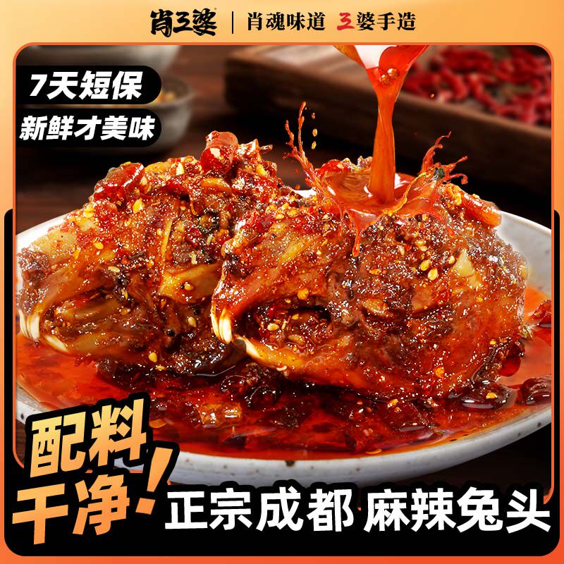 肖三婆自贡老妈麻辣兔头四川特产冷吃兔子零食兔肉解馋小吃
