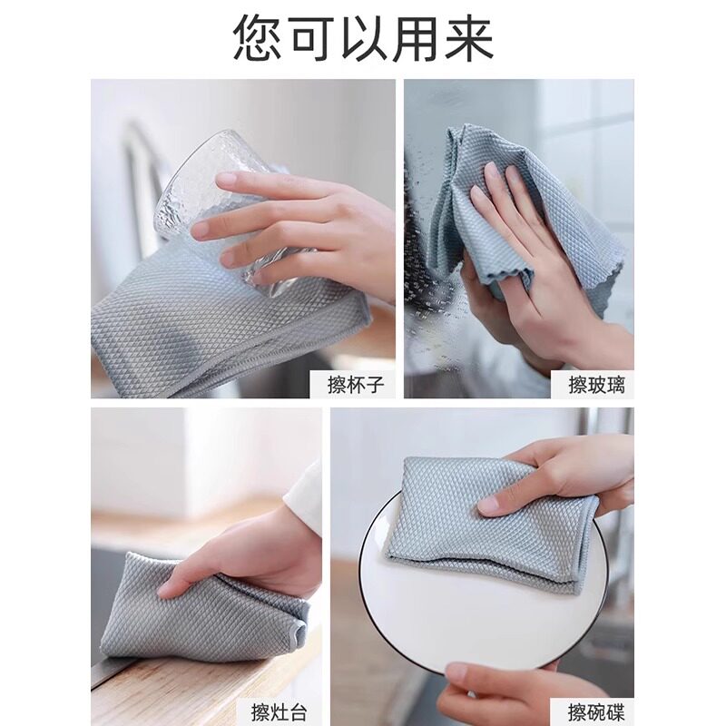 鱼鳞抹布擦玻璃镜子洗碗擦桌保洁厨房专用清洁家用吸水不掉毛无痕