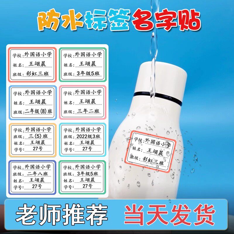 小学生初中班级学号名字贴透明防水姓名贴纸水杯标签贴不干胶定制