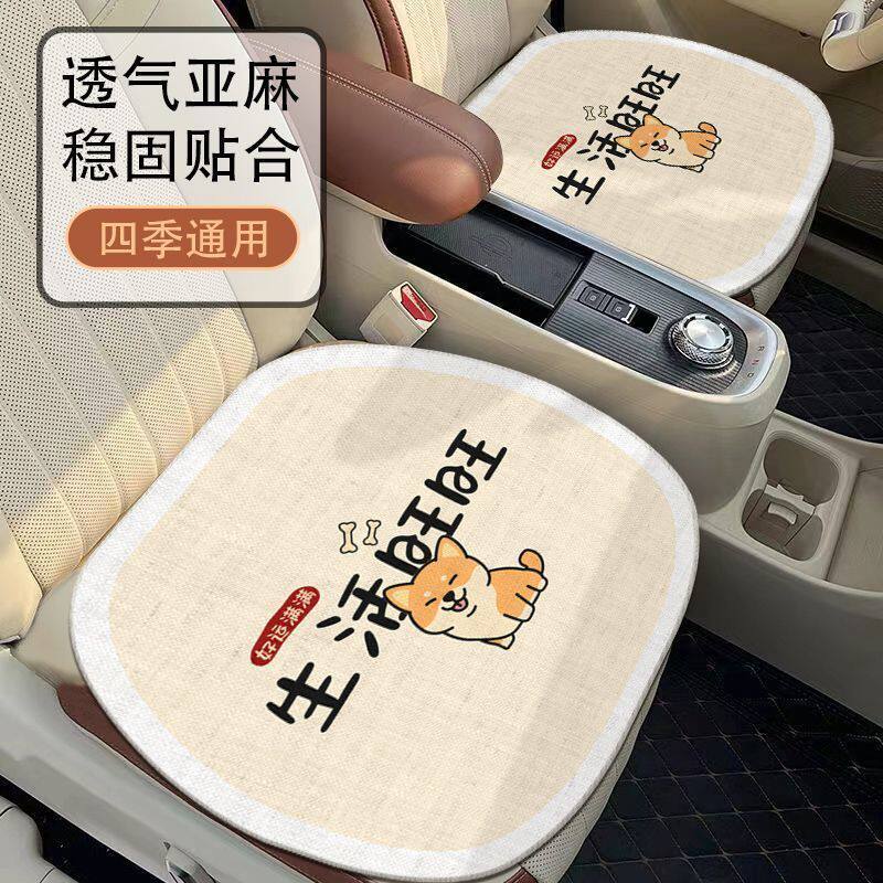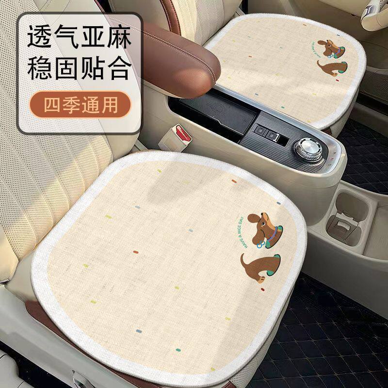 汽车后排亚麻汽车座垫四季通用款可爱卡通坐垫通风透气装饰品耐脏