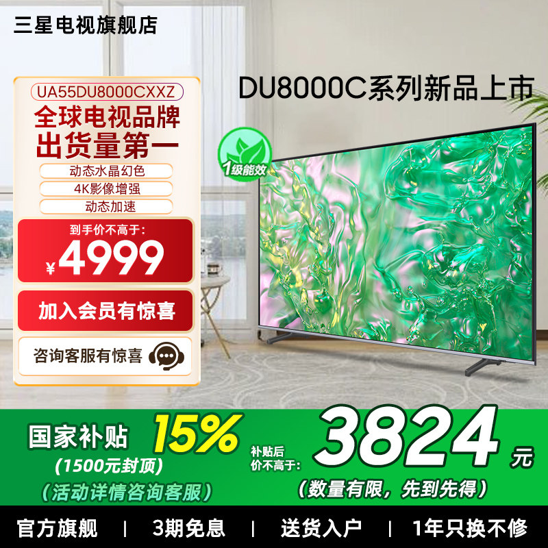 【补贴15%】三星55DU8000C 55英寸 钻彩4K LED超薄电视新品