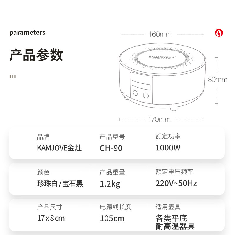 金灶CH-90家用电陶炉小型围炉烤网泡茶专用烧水壶煮茶炉茶具套装