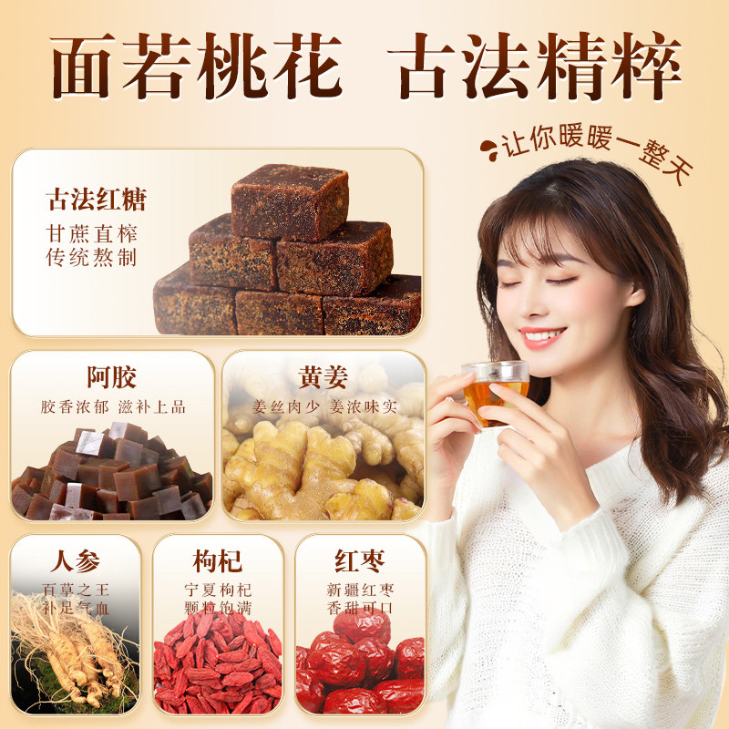 红糖姜茶人参阿胶大姨妈生姜理期官方旗舰店单独包装块姜枣茶正品