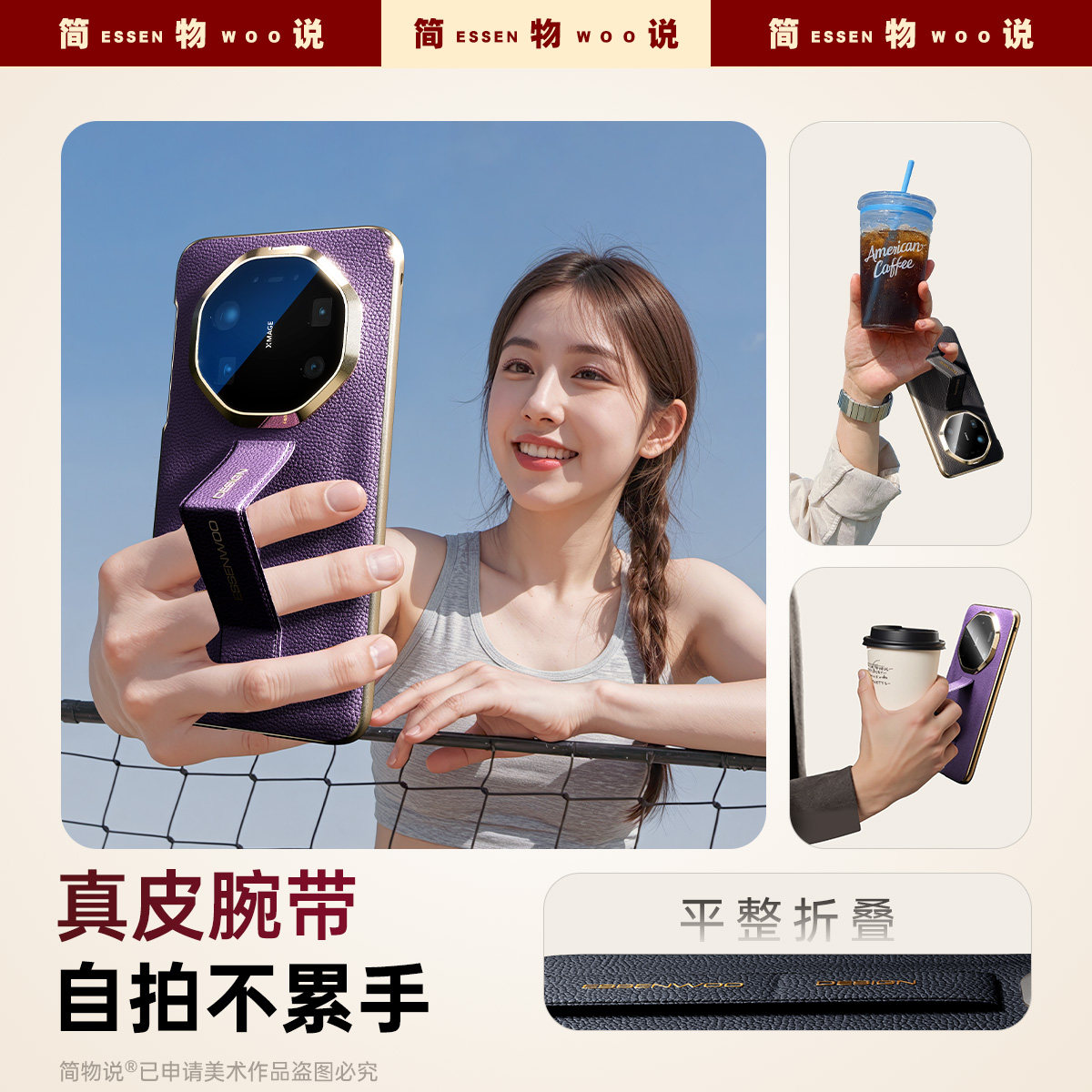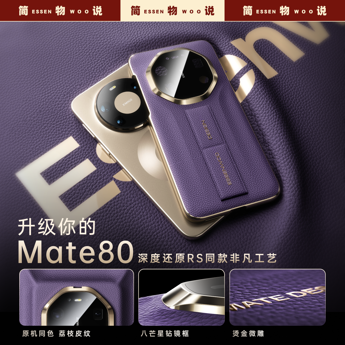 简物说适用华为mate80promax手机壳mate80rs新款真皮Mate70RS非凡大师保护套腕带mate60全包防摔高级商务外壳