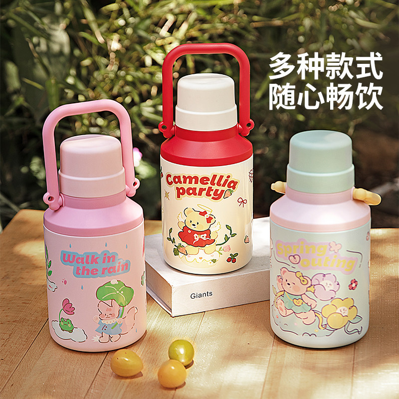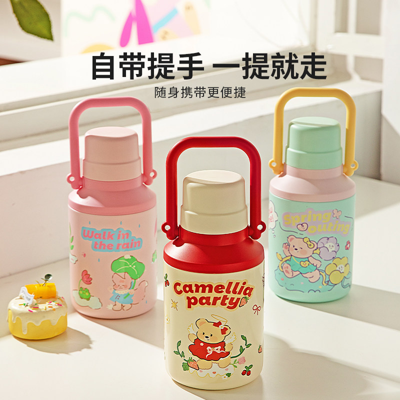 摩登主妇大容量保温杯办公室外出携带水杯带提手高颜值杯子保温壶