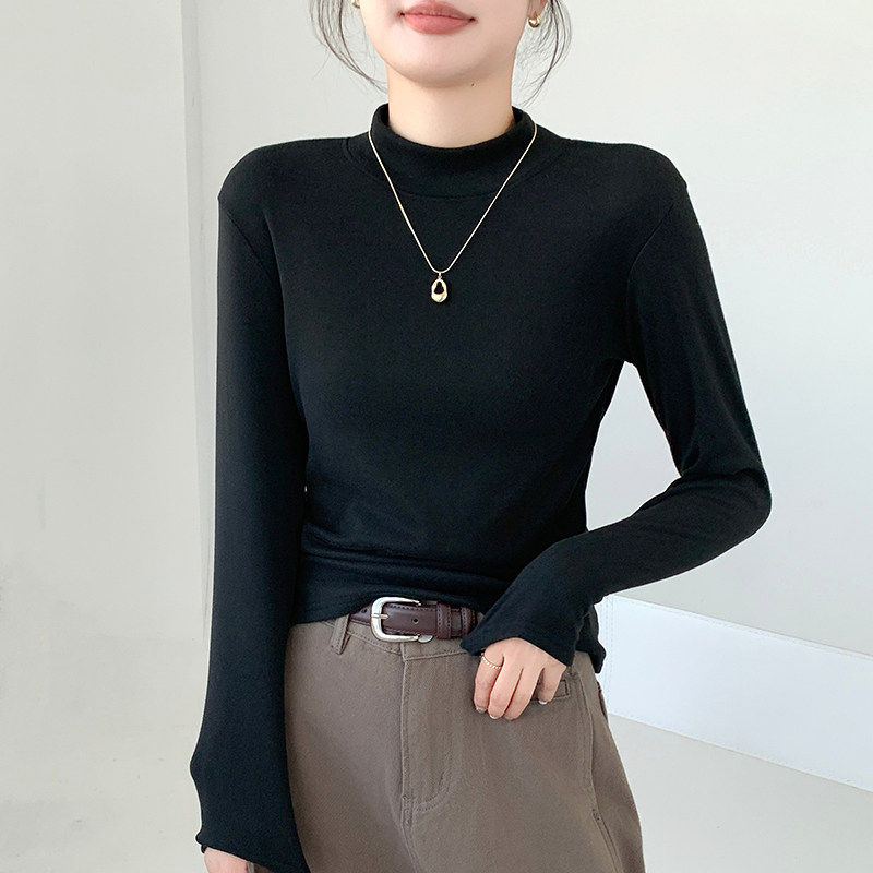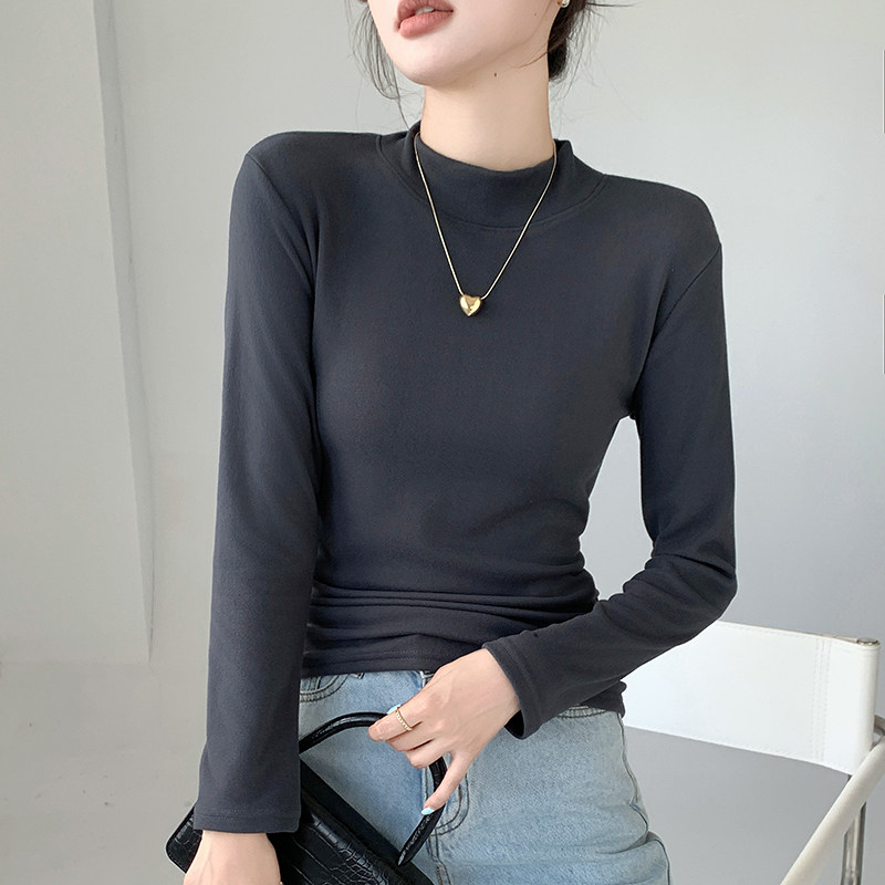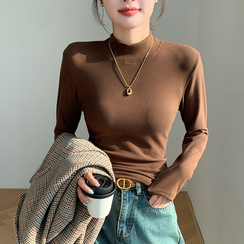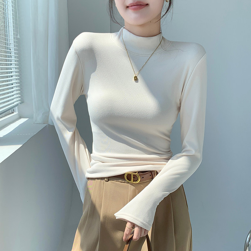 半高领打底衫女士内搭秋冬季加绒加厚一体绒修身保暖中领长袖上衣