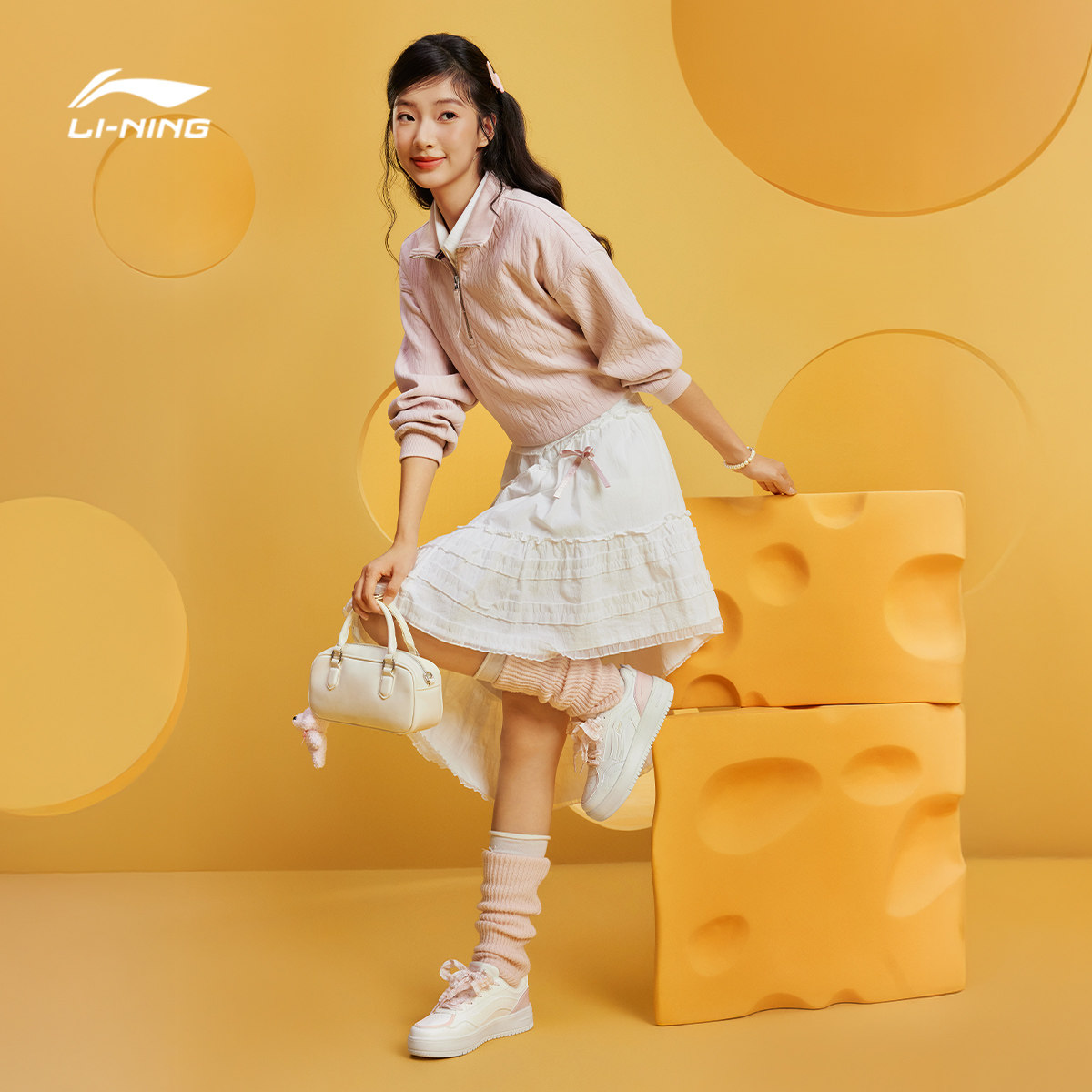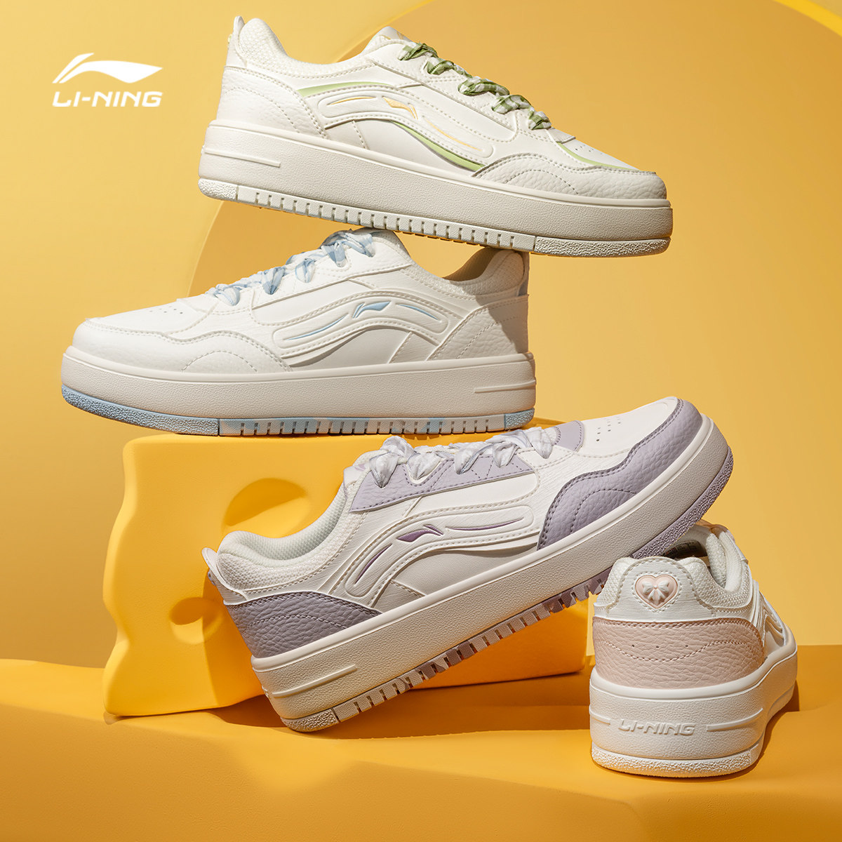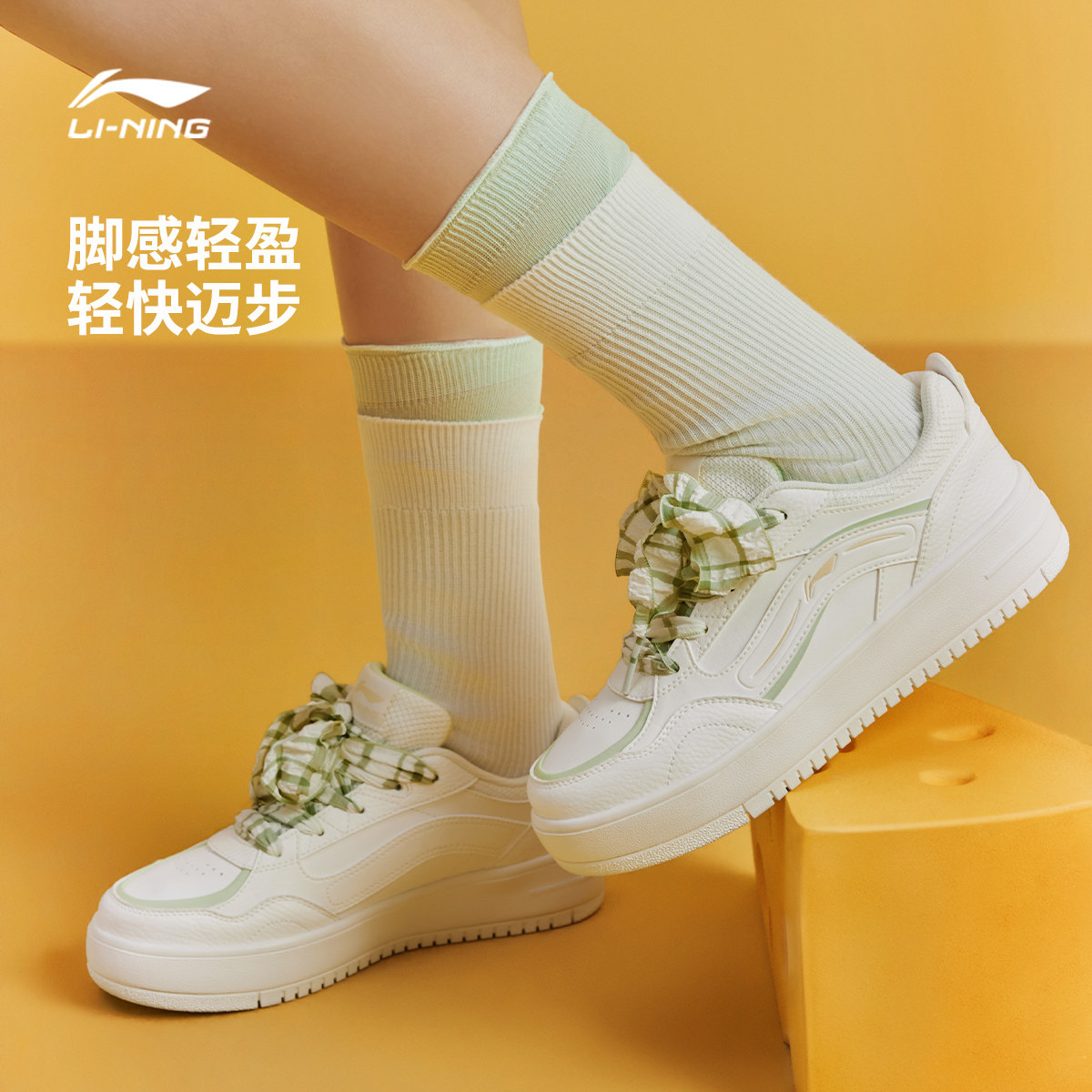 李宁奶酪丨休闲鞋女鞋2026新款春季轻便小白鞋厚底增高板鞋运动鞋