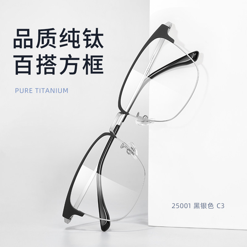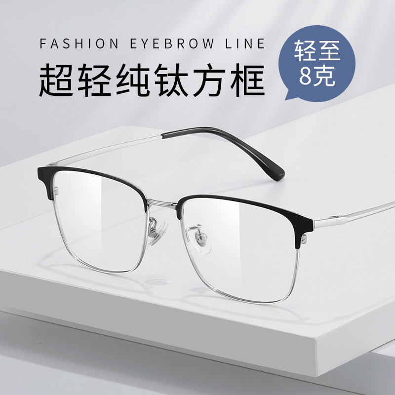 久森超轻纯钛眼镜框时尚眉线眼镜架可配防蓝光抗辐射眼镜片 25001