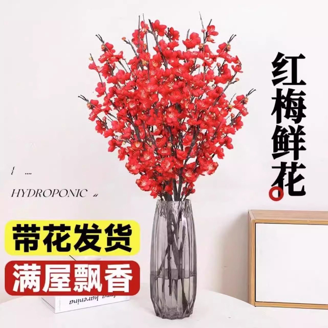 水培红梅花鲜切枝带花枝鲜花室内花卉雪柳盆栽植物多规格
