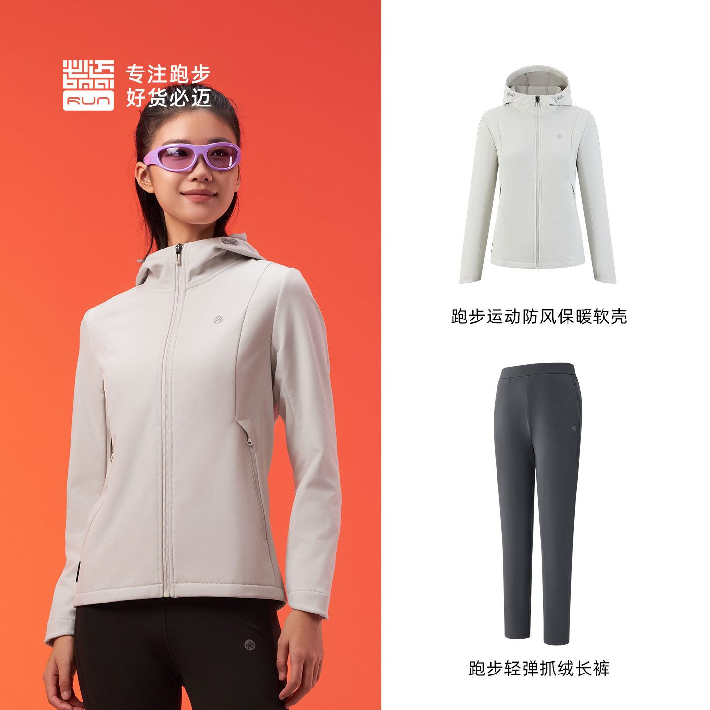 必迈秋冬运动保暖套装【防风保暖软壳衣+抓绒长裤】男女跑步训练