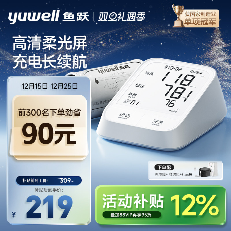 国家补贴鱼跃电子血压计血压测量仪医用家用正品旗舰充电测压仪器