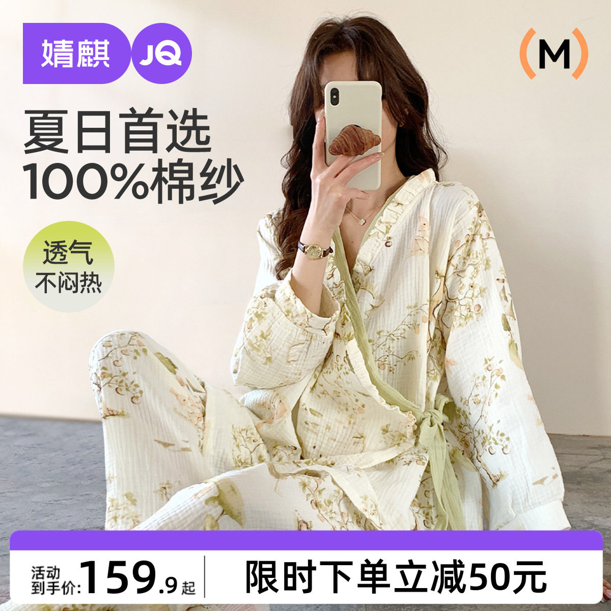 婧麒月子服夏季薄款孕妇哺乳睡衣纯棉纱布产后新款家居服两件套装