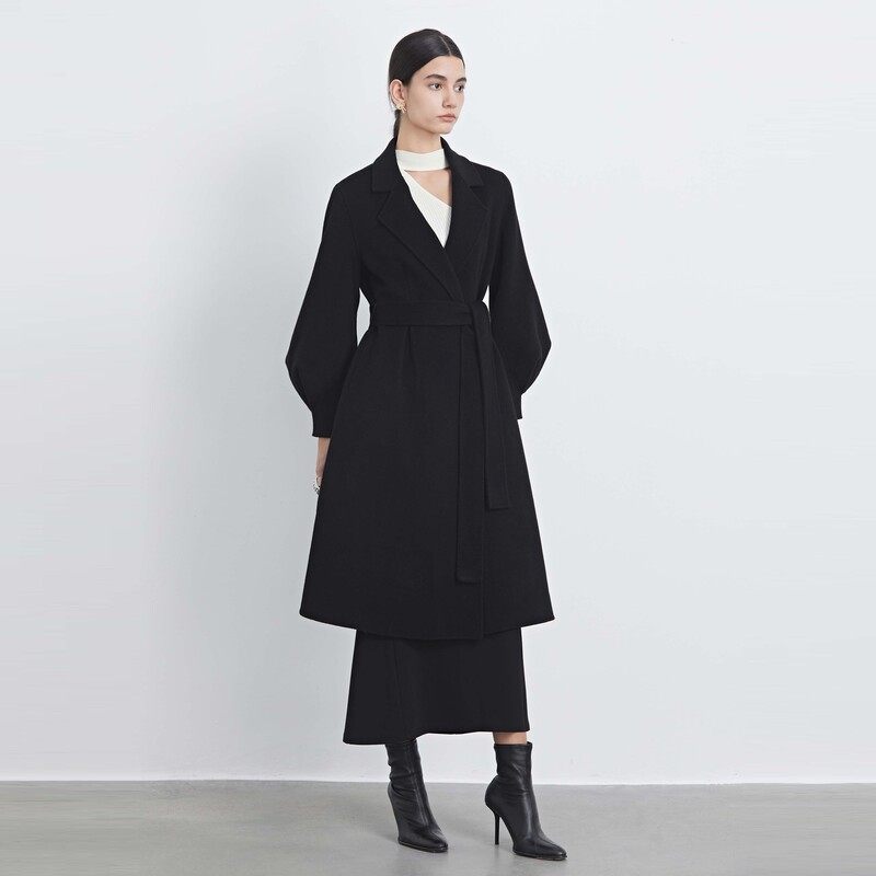 西装领大衣 收腰泡泡袖 毛呢质地