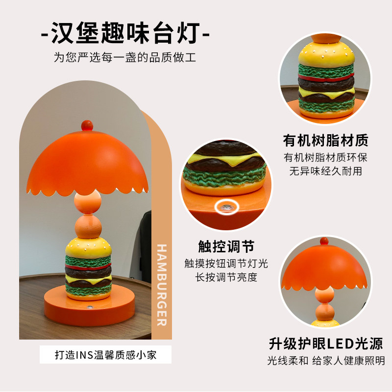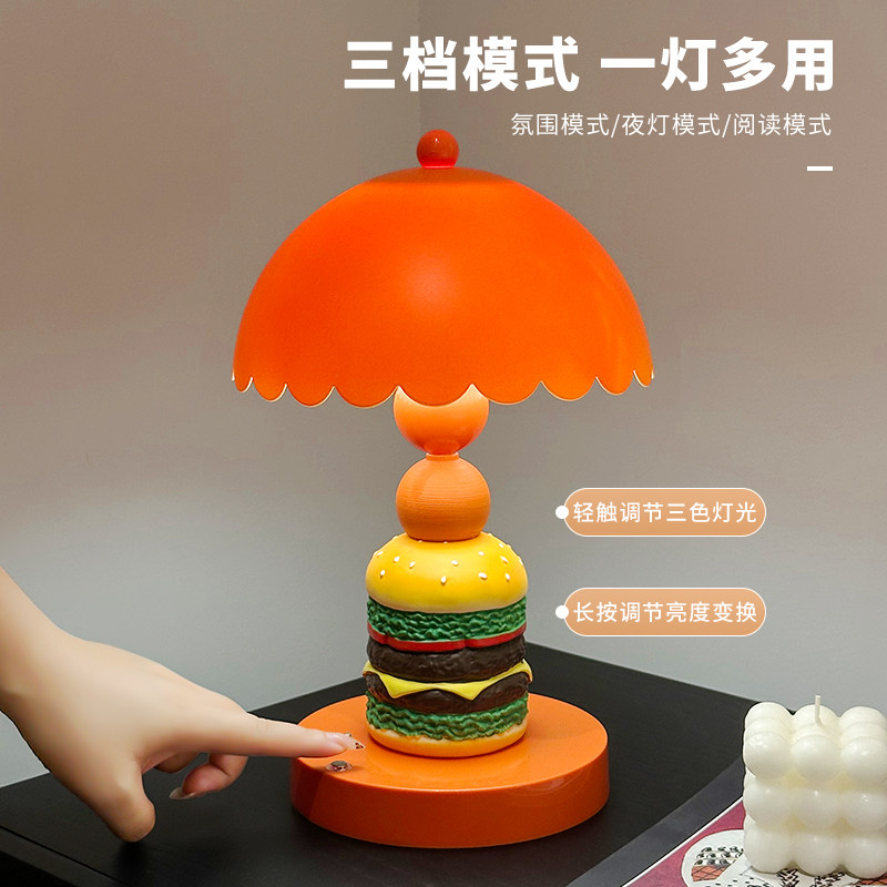 汉堡台灯床头灯卧室睡眠灯儿童房间宿舍学习小夜灯书房桌面摆件