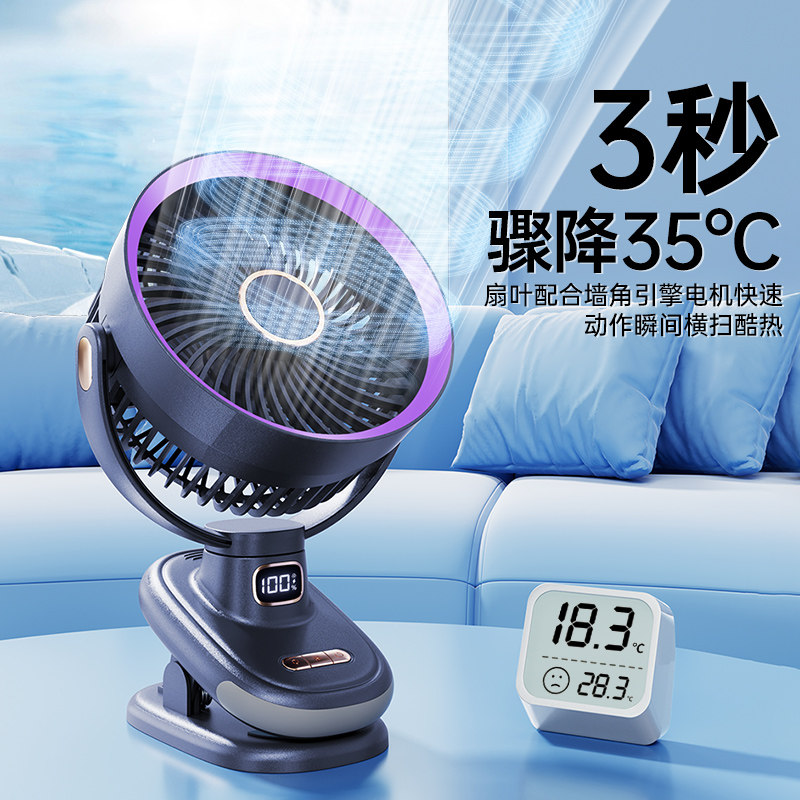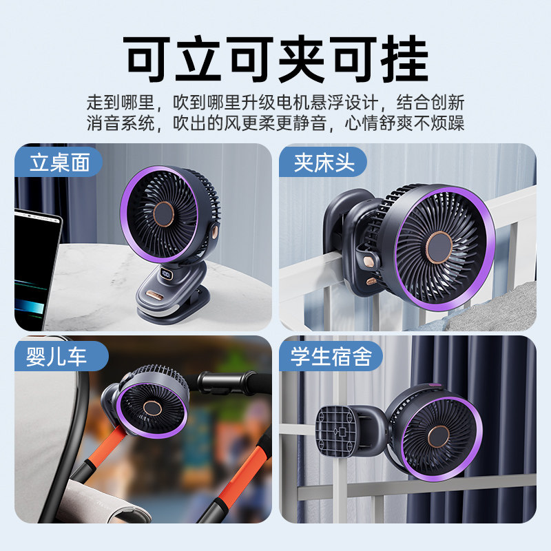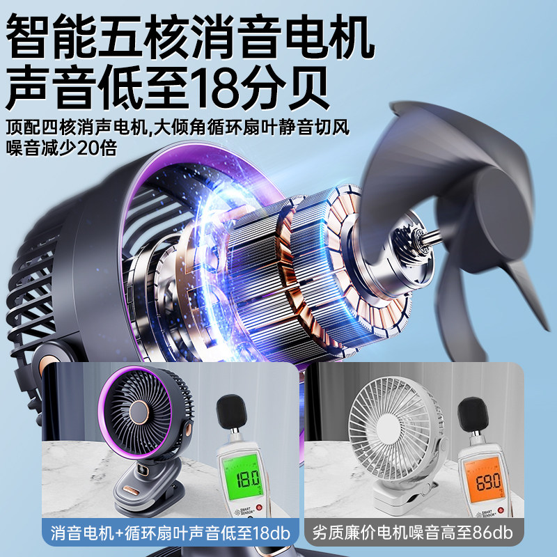 制冷循环】桌面小风扇静音办公室桌上小型家用2025新款夹式usb充电风扇学生宿舍床上超长续航车载婴儿便携