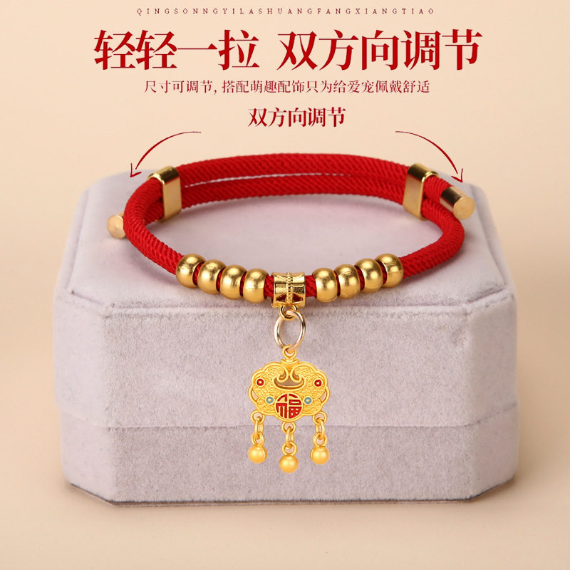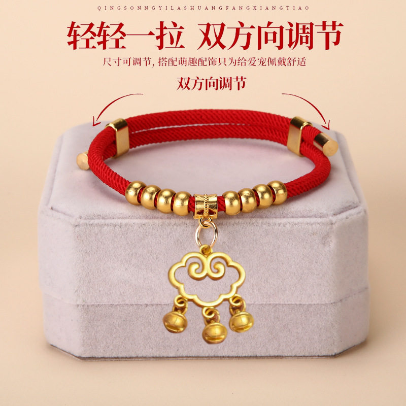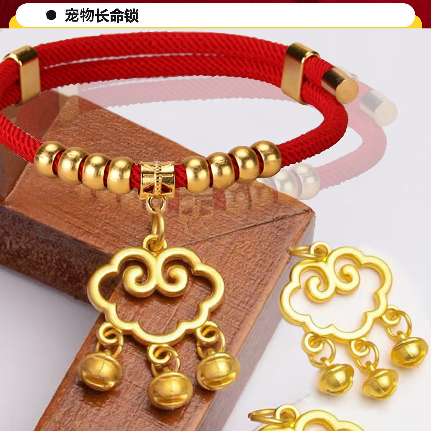 猫项圈猫咪狗狗铃铛可调节项链长命锁宠物颈圈无声颈饰品金珠红绳