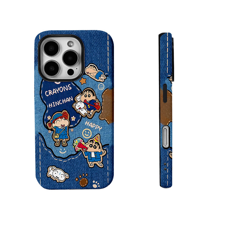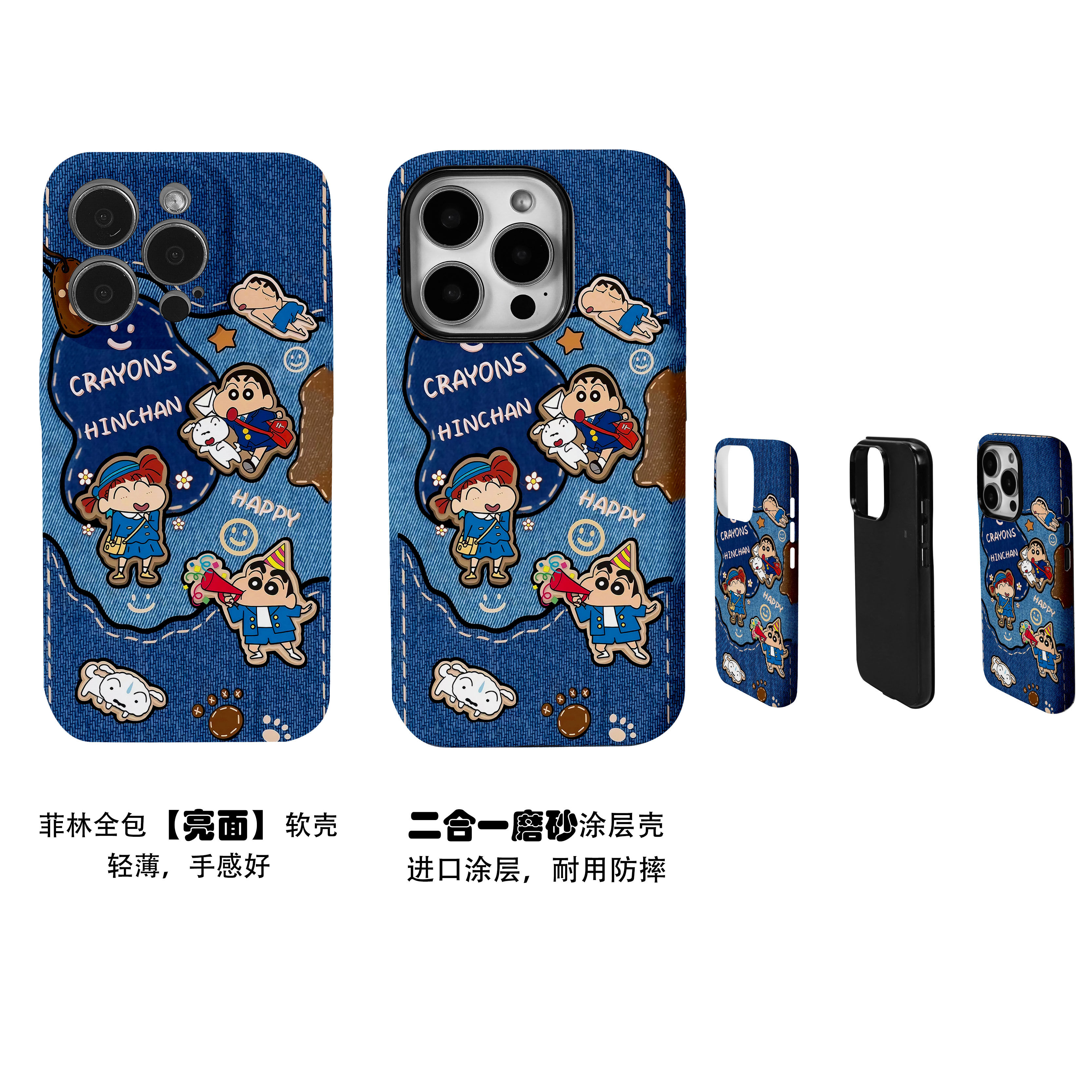 卡通拼接牛仔蜡笔小新菲林二合一手机壳适用苹果17nova14华为p70mate60小米15opporen14ovivo荣耀300iPhone16