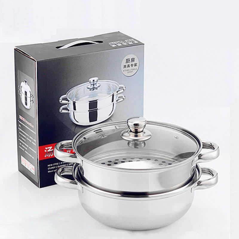 康巴赫款不锈钢加厚汤锅煤气电磁炉通用蒸锅家用火锅盆专用双耳煮
