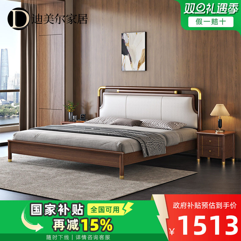 新中式实木床真皮现代胡桃木主卧高端家具轻奢大气大床工厂直销床