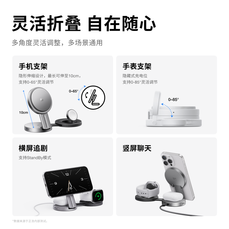 正浩EcoFlow【超能新品】Qi2.2三合一磁吸折叠式无线充电器支架便携小巧适用苹果17/Airpods/Apple Watch