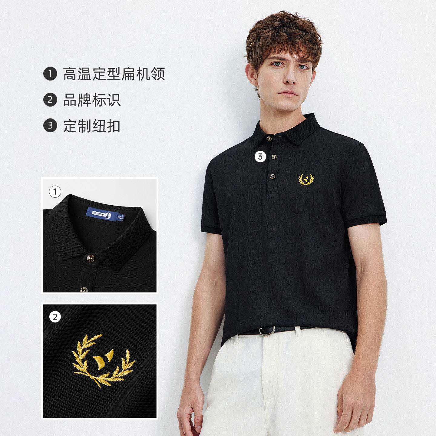 [桑蚕丝]Navigare意大利小帆船黑色短袖Polo衫男夏季休闲翻领T恤