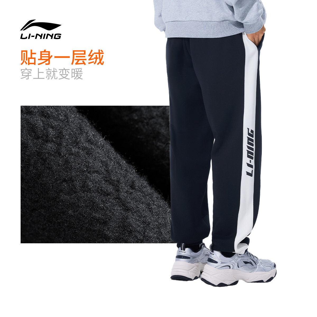 李宁热力裤丨卫裤男士百搭新款运动宽松冬季加绒保暖束脚运动长裤