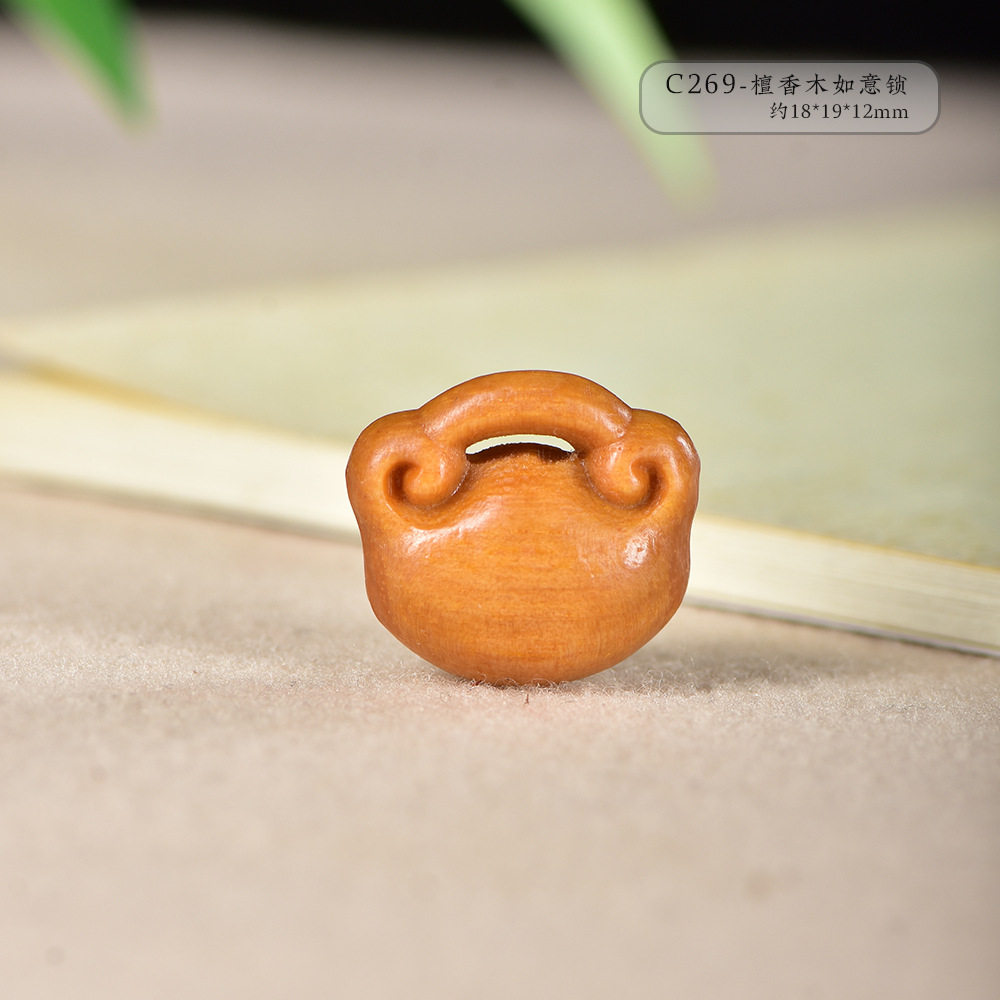 天然紫檀檀香木雕刻如意锁小挂件特色中国风饰品手工diy配件男女