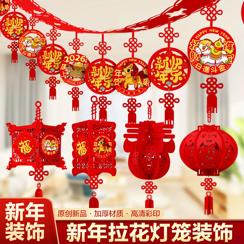 新春2026马年元旦新年装饰福字拉花拉旗灯笼挂饰春节过年室内布置