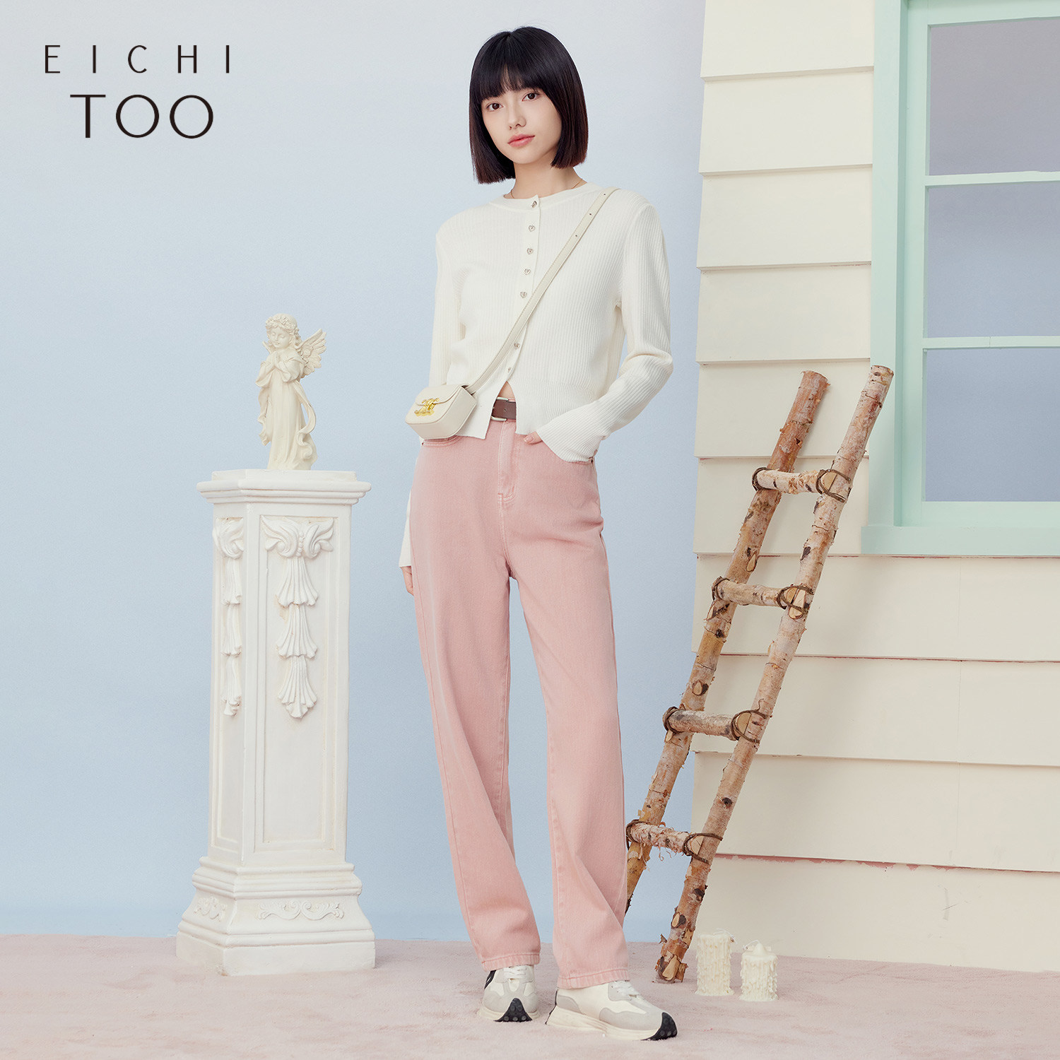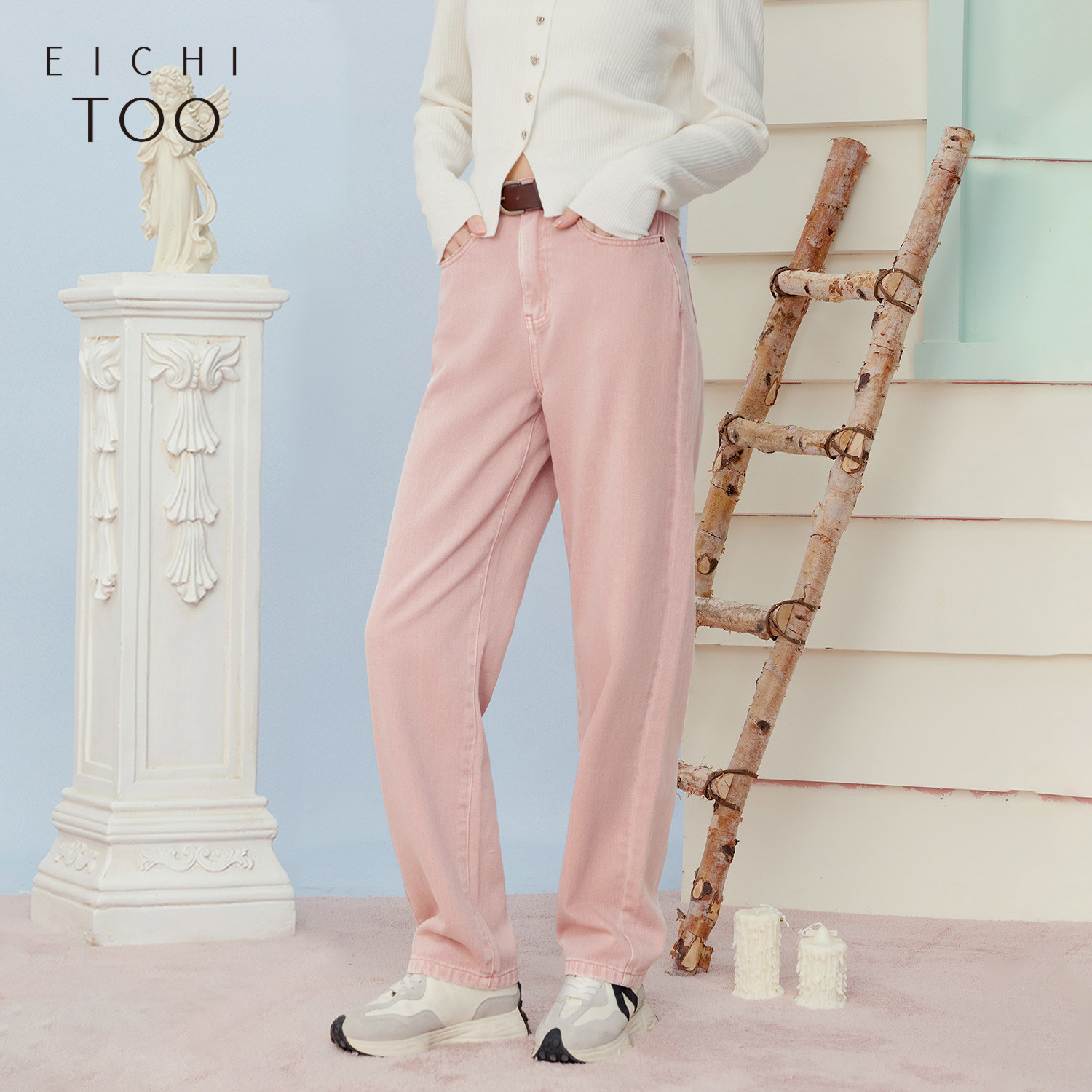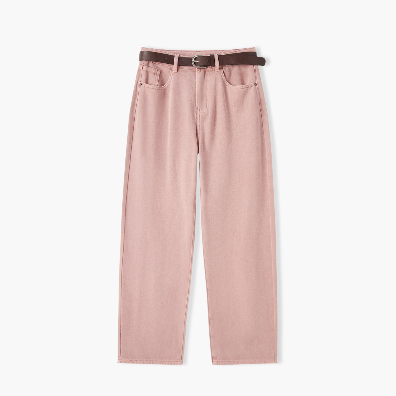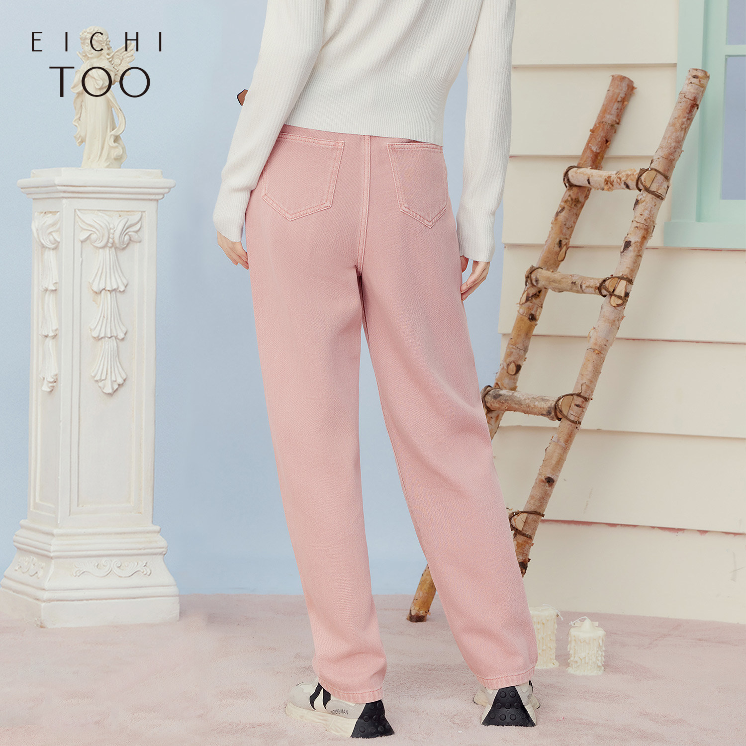 爱居兔春季新款时尚粉色减龄款全棉牛仔裤哈伦裤