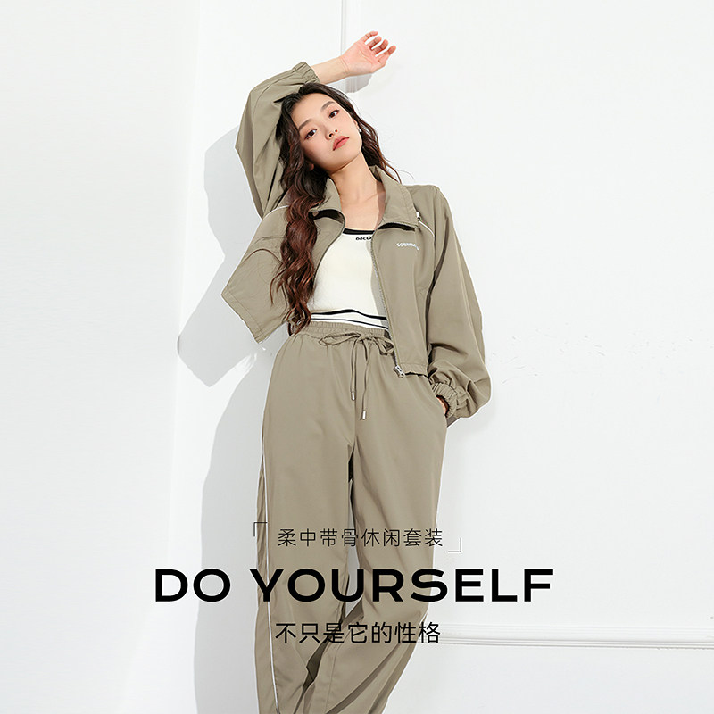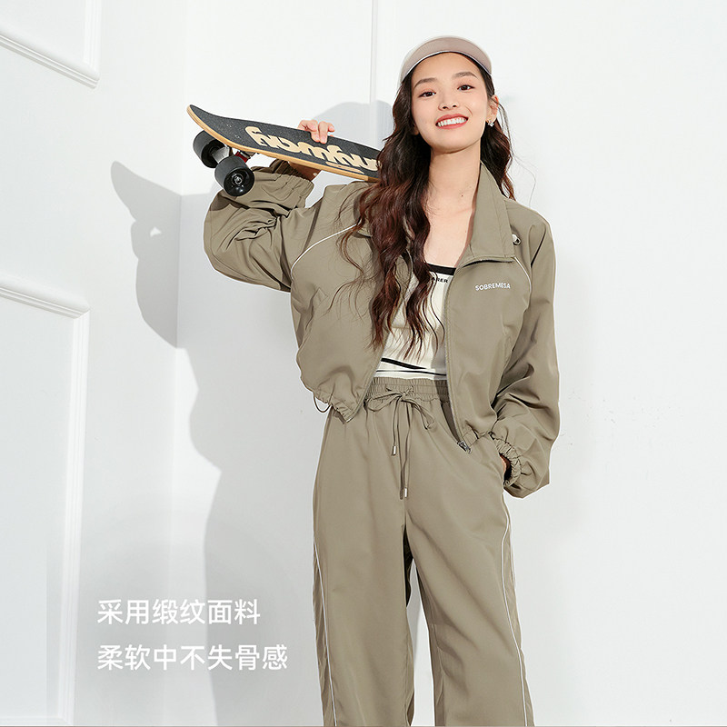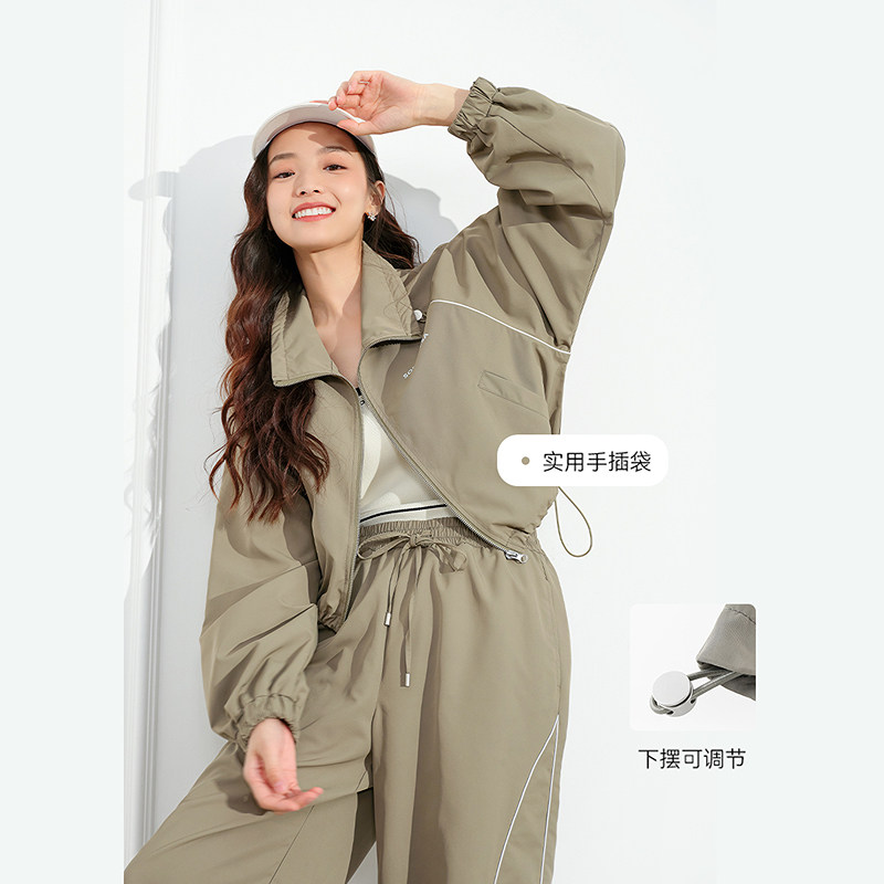 LAGOGO运动风休闲拉链立领短外套女拉谷谷春秋新款纯色通勤套装