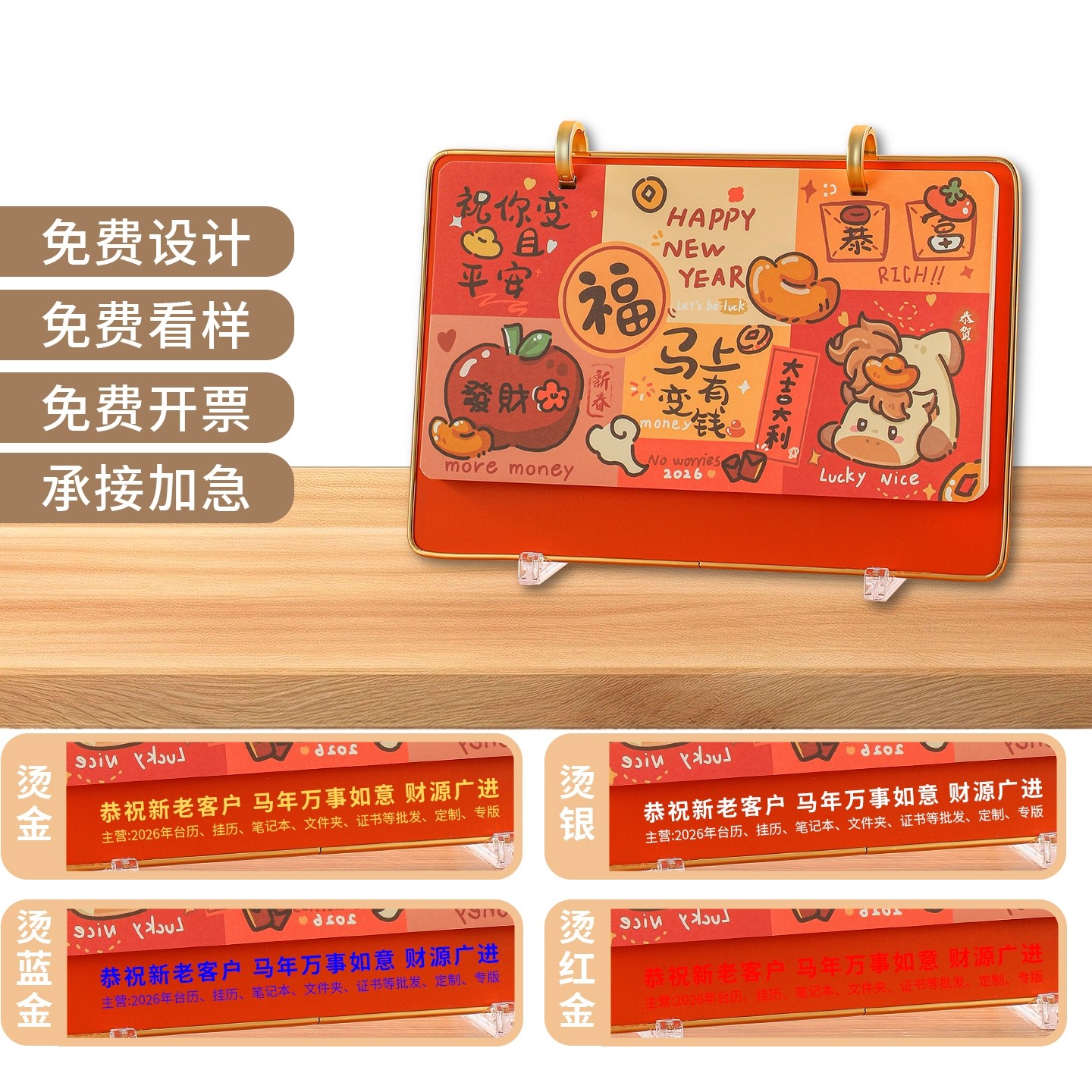 台历定制2026年新款日历桌面创意摆件办公室马年新年简约木制工作备忘录打卡记事计划本月历公司企业定做logo