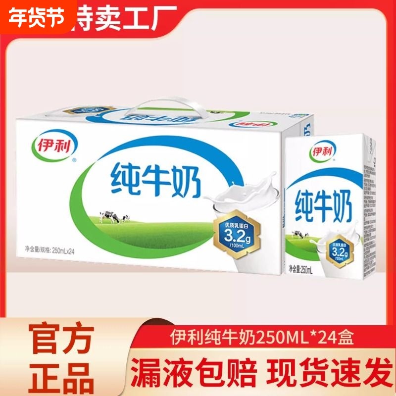 伊利官方旗舰店纯牛奶250ml*16盒整箱学生营养早餐限时抢【9月】