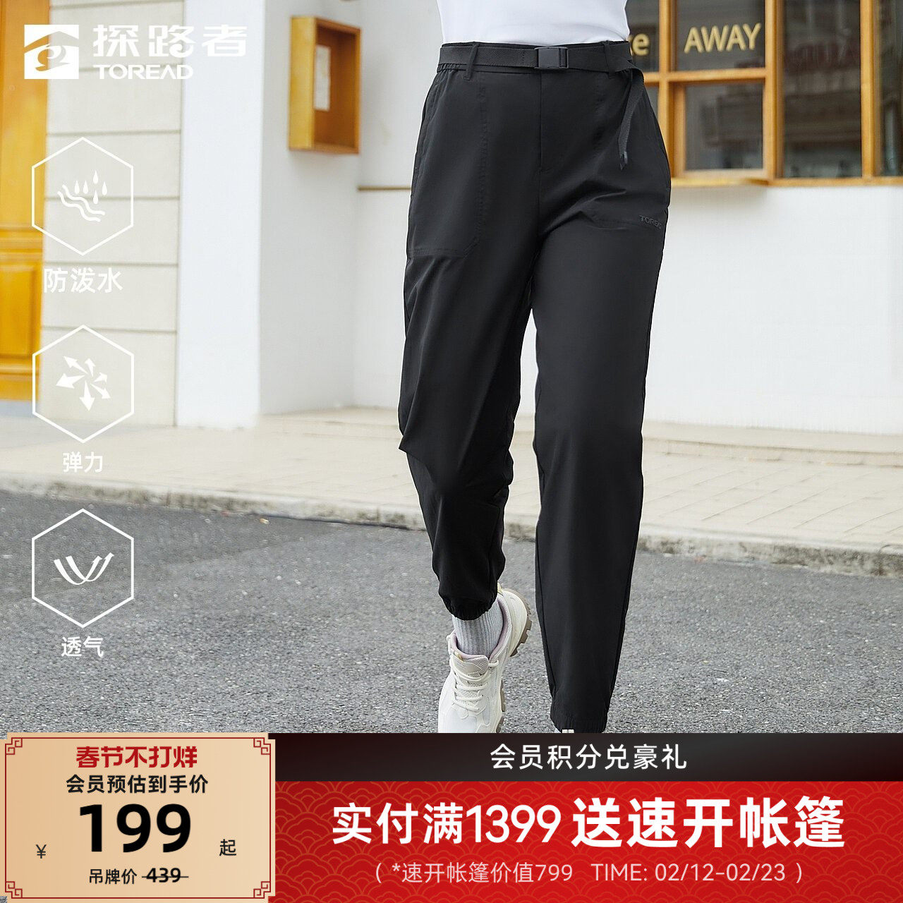 探路者功能裤春夏新款长裤男女情侣防泼水休闲工装裤户外运动裤