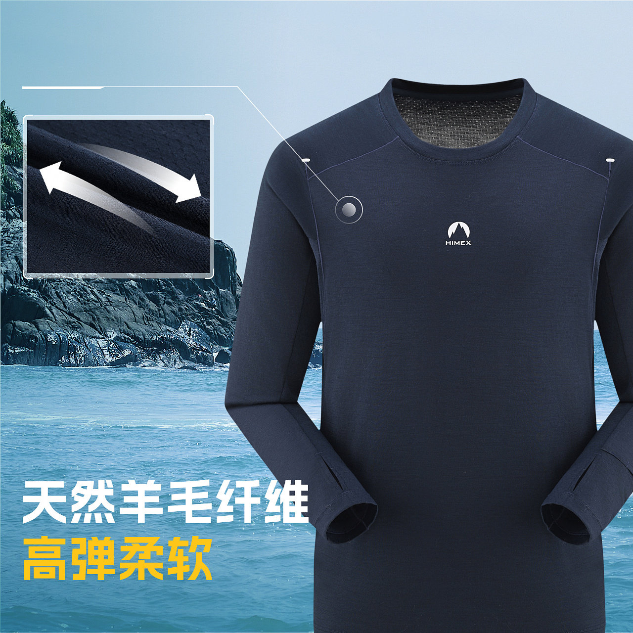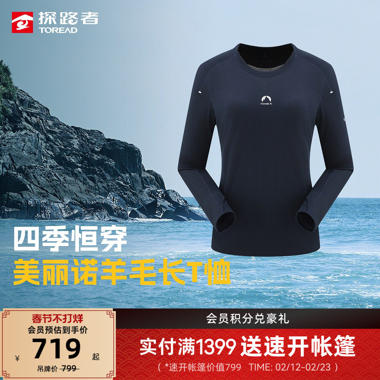 【商场同款】探路者户外运动长T恤男女款天然美丽诺羊毛吸湿透气