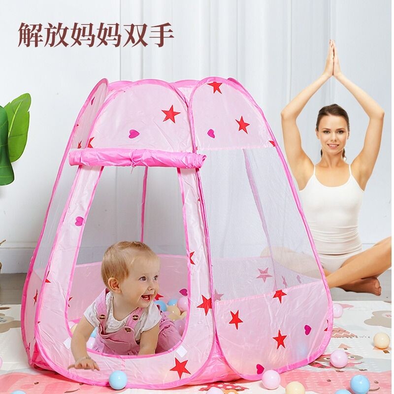儿童帐篷室内游戏屋粉色公主透气可折叠免安装户外蒙古包便携室外