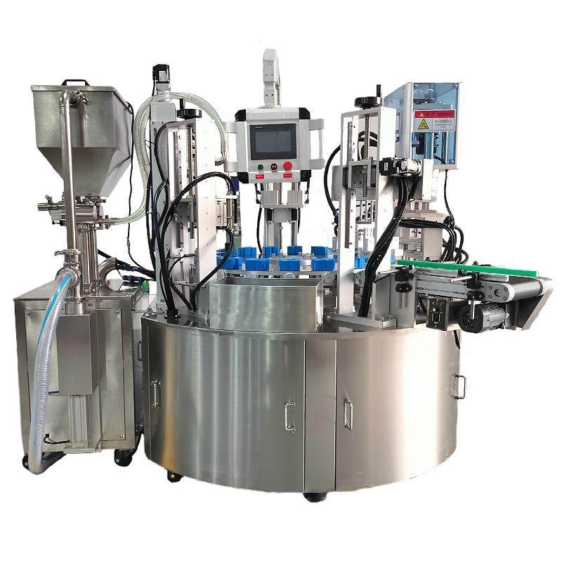 全自动转盘式水乳膏霜机械灌装旋盖一体机护手霜二合一分装机