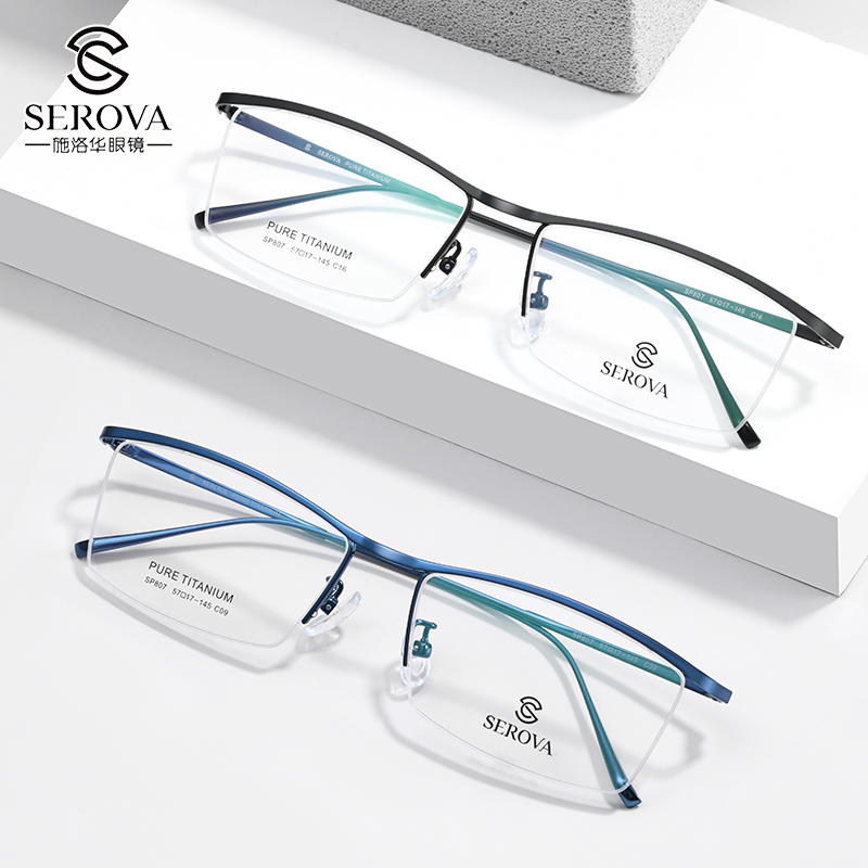 施洛华近视眼镜框超轻钛架眉线框眼镜半框男士商务眼睛镜架SP807